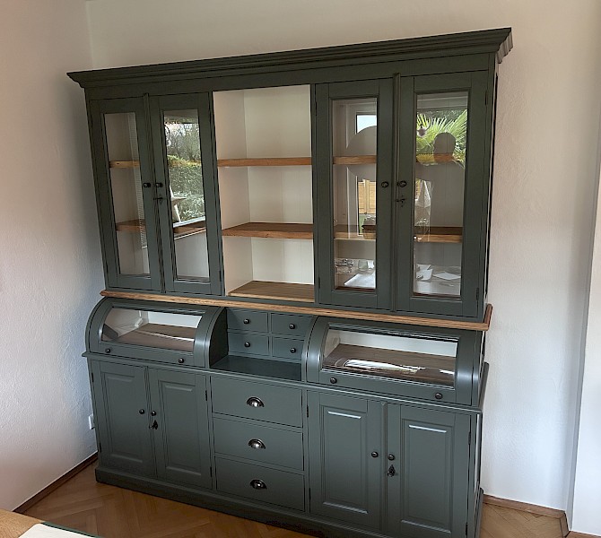 Perfekter Service und gute Qualität. Als die Vitrine geliefert wurde, geriet das vorhandene Sideboard in die Bedeutungslosigkeit. Eine neue Kommode wurde nach den Maßen des alten Sideboards maßgefertigt und alles passt wieder zusammen.