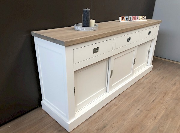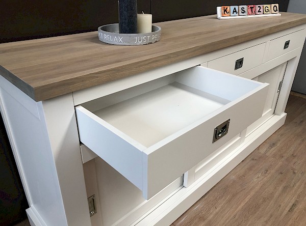 Diese Kommode hat ein elegantes Aussehen. Enthält 3 Schubladen, in denen ein Softclosing installiert ist. Die Türen hängen in Metallschienen und laufen sehr ruhig. Statt weiß kann dieses Sideboard auch in grau, murano, schwarz, verona und anthrazit lackiert werden. Auch in dieser Linie in einem Schrank, TV-Schrank oder Couchtisch zu verkaufen, schauen Sie weiter auf unserer Website und finden Sie die richtige Kombination.