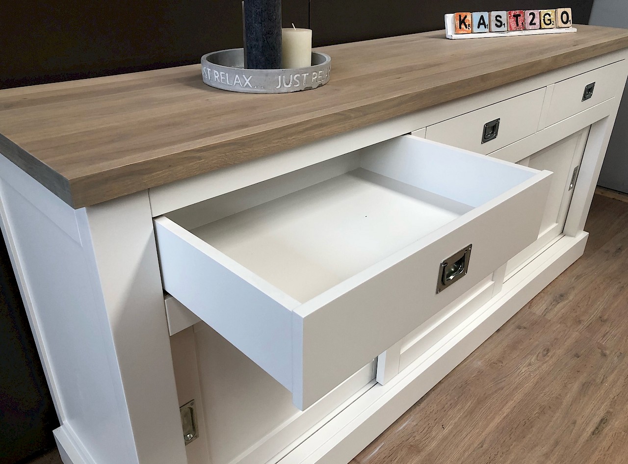 Diese Kommode hat ein elegantes Aussehen. Enthält 3 Schubladen, in denen ein Softclosing installiert ist. Die Türen hängen in Metallschienen und laufen sehr ruhig. Statt weiß kann dieses Sideboard auch in grau, murano, schwarz, verona und anthrazit lackiert werden. Auch in dieser Linie in einem Schrank, TV-Schrank oder Couchtisch zu verkaufen, schauen Sie weiter auf unserer Website und finden Sie die richtige Kombination.