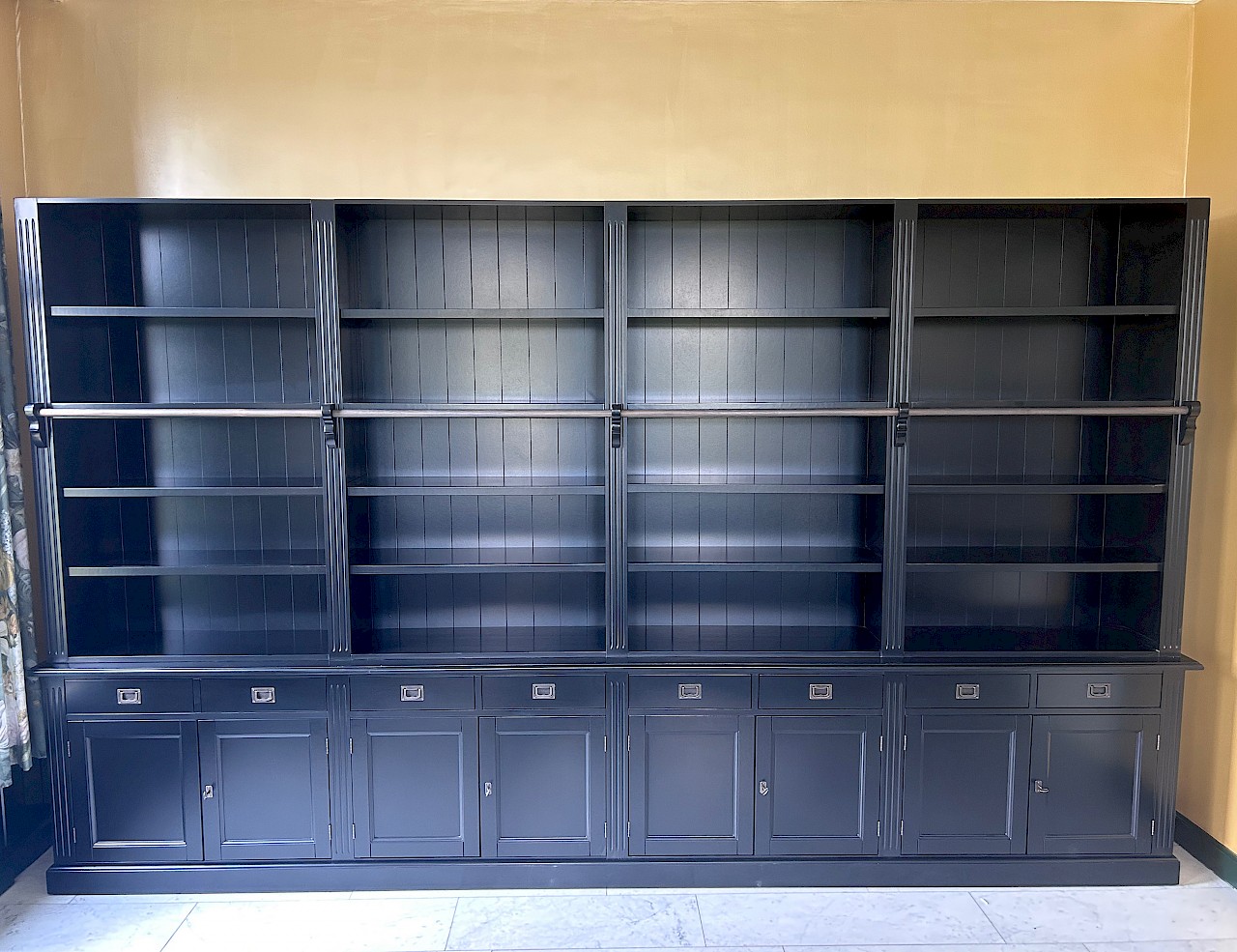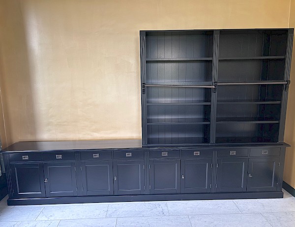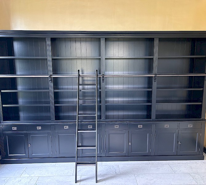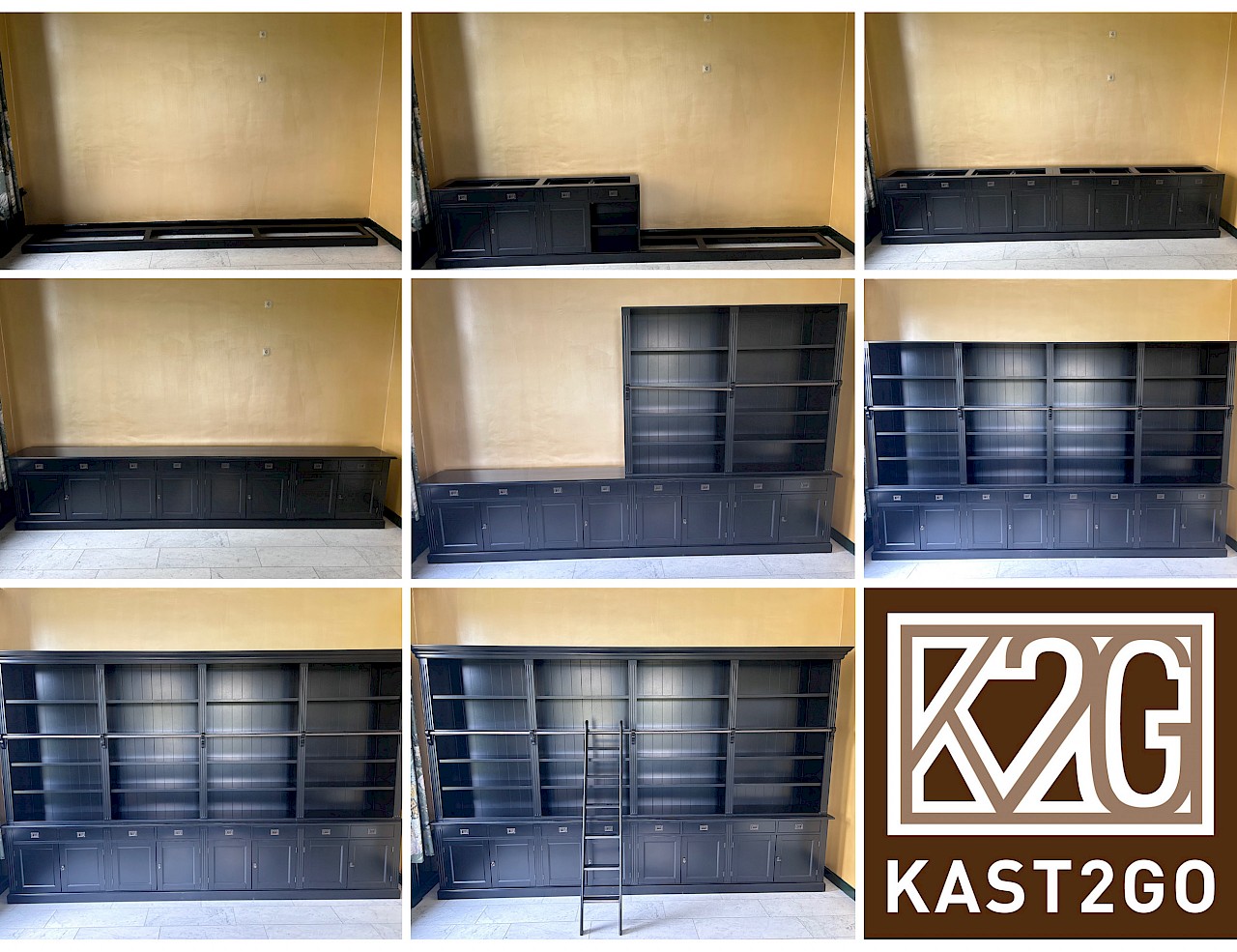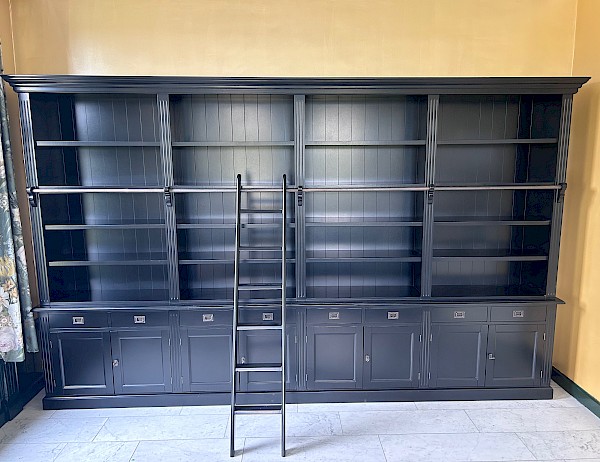 Mega boekenkast van 400cm breed met ladder en met 4 legplanken, dus heel veel afzetruimte voor boeken!