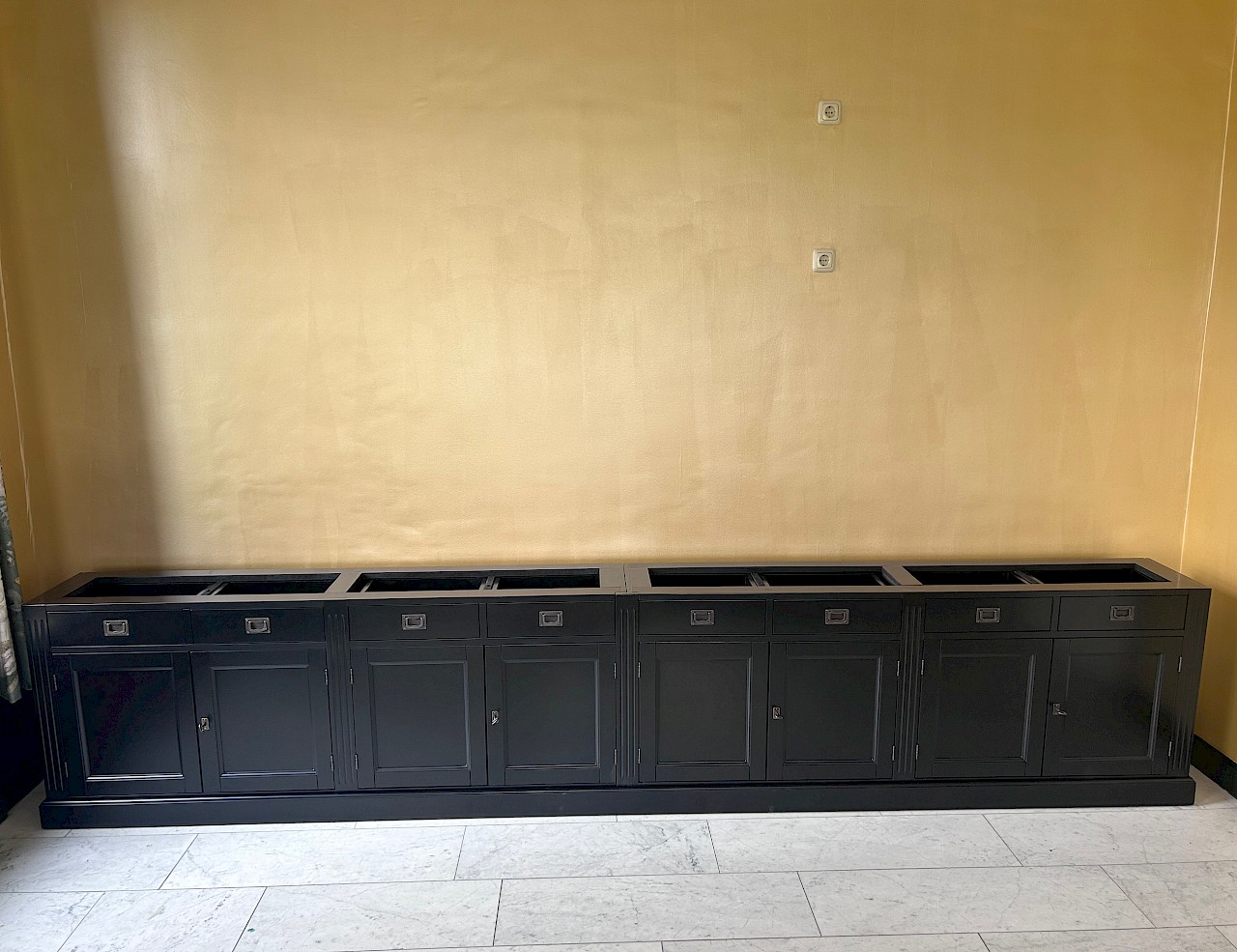 De lades lopen op softclosing, de onderkast is afsluitbaar. Ook in alle andere maten van 100 tot 400cm verkrijgbaar.