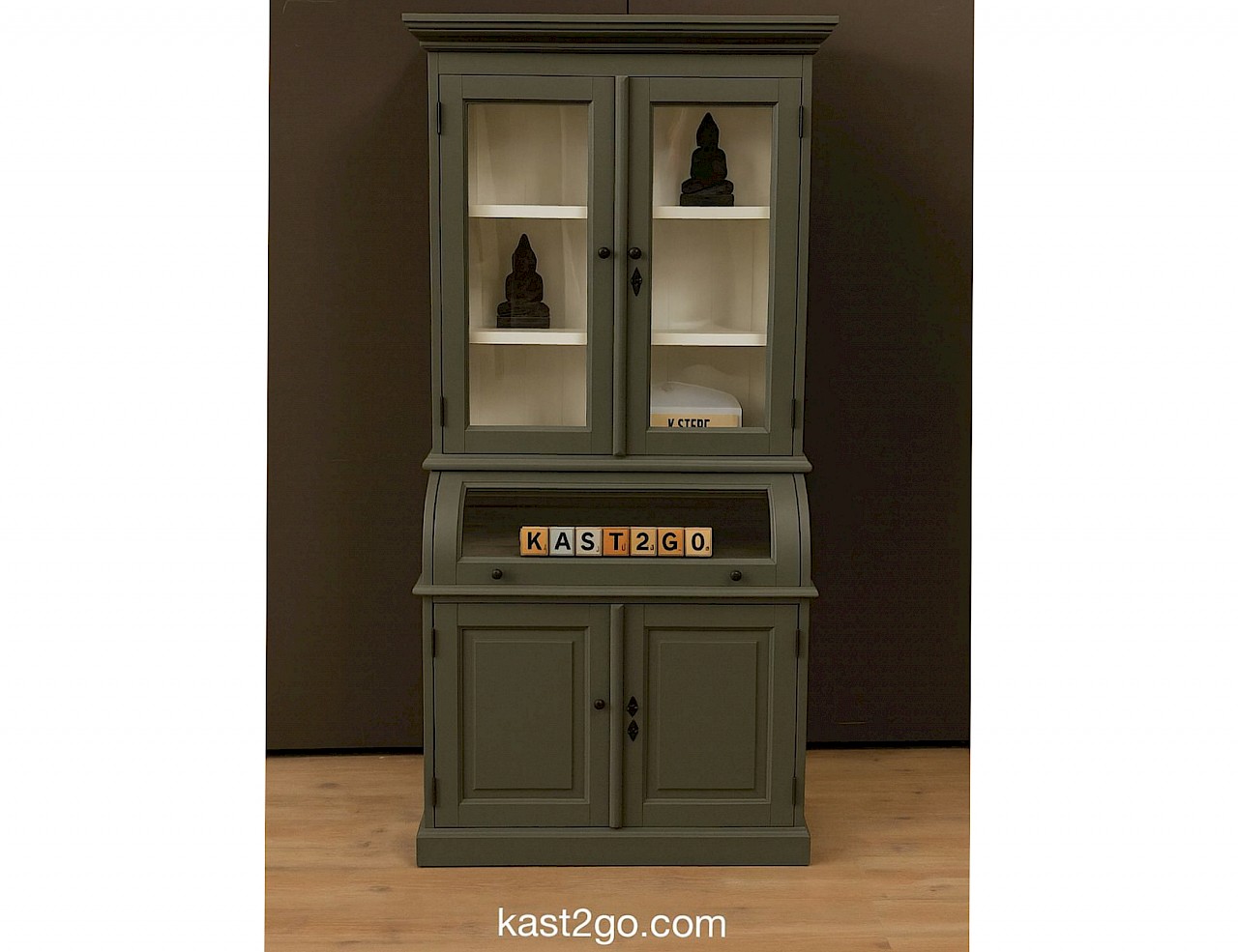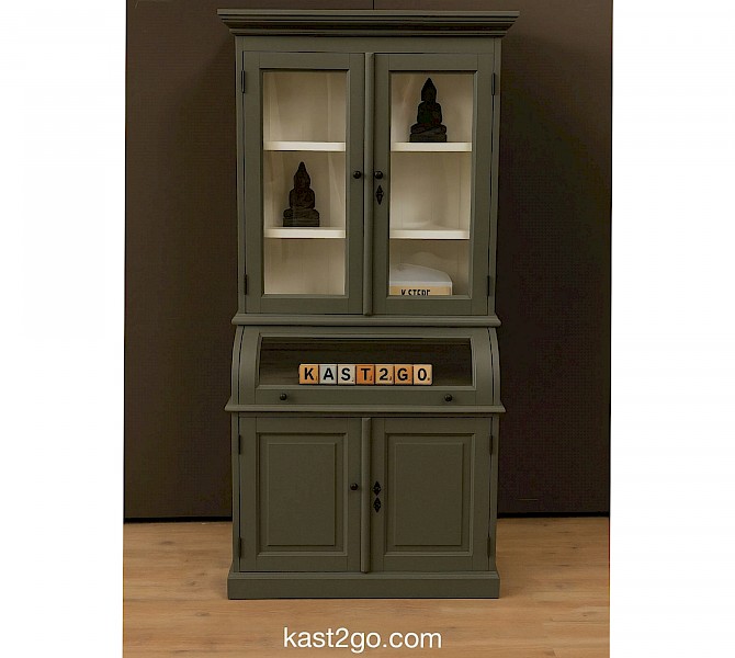 Deze mooie buffetkast Bastiaan bestaat uit 2 gedeeltes, onder en boven. Het bovenste gedeelte van deze witte buffetkast valt achter de sierlijst. De klep van deze kast schuiven naar binnen en kunnen ook in een vaste stand open blijven staan. Met deze buffetkast haalt u een zeer romantische landelijke sfeer in huis! Softclosing op de lades! Speciaal voor deze klant in RAL7009 gespoten, maar uiteraard kan ook u zelf uw gewenste RAL-kleur kiezen, prijs blijft hetzelfde!