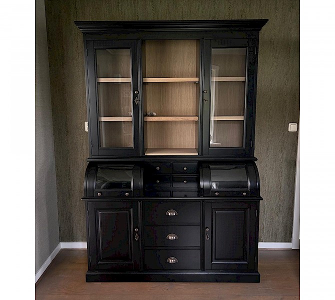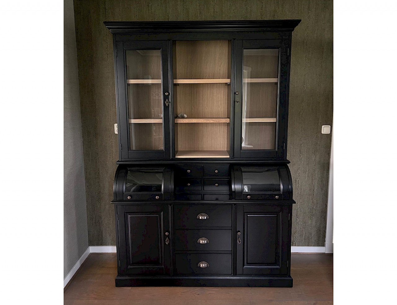 Deze prachtige buffetkast Bastiaan heeft een geweldige uitstraling. Uiteraard bestaat de kast uit 2 delen, het bovenste gedeelte valt achter een sierlijst in het onderste gedeelte. De afwerking is glad gespoten, en hoogwaardige kwaliteit: softclosing op de lades, en afsluitbare deuren!