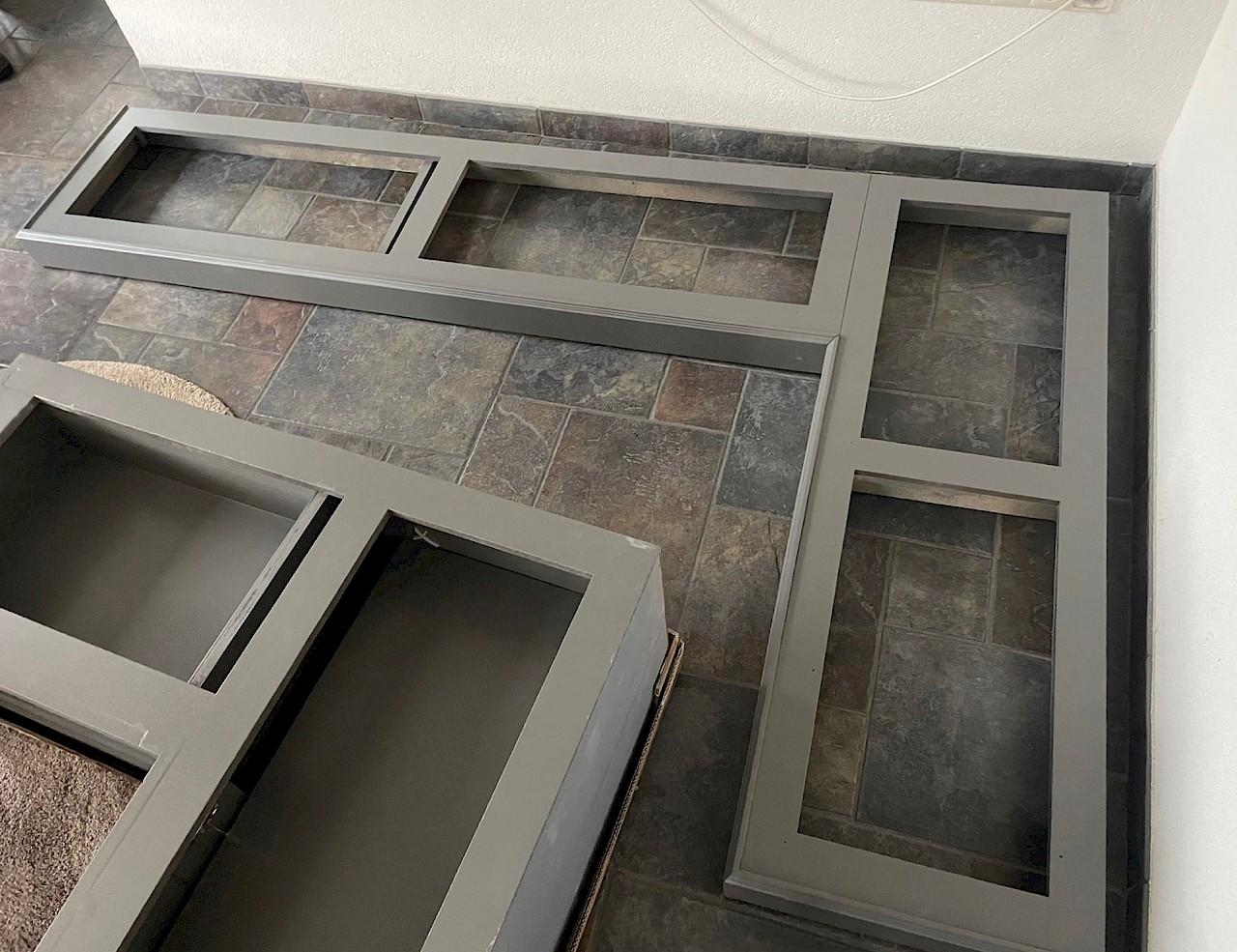 De lengte vanuit hoek gemeten is 240 en 150cm, de diepte is 50cm, de hoogte is 55cm. Uiteraard kunnen we in alle andere gewenste afmetingen ook een hoekmeubel voor u maken. Vraag vrijblijvend meer informatie bij ons.