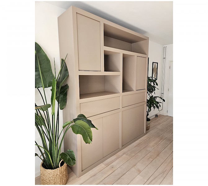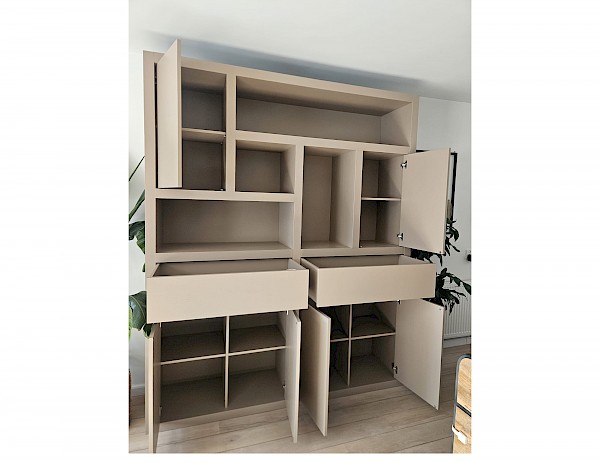 Maatwerk vakkenkast Job 200 taupe (eigen indeling)