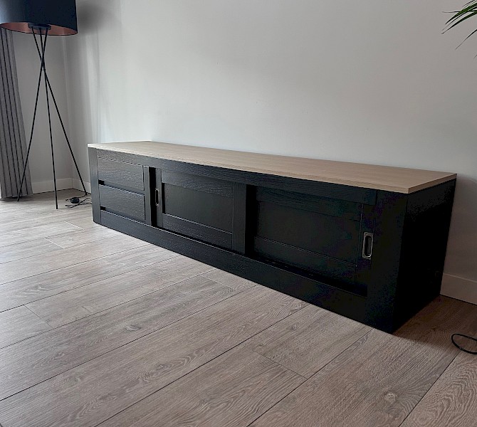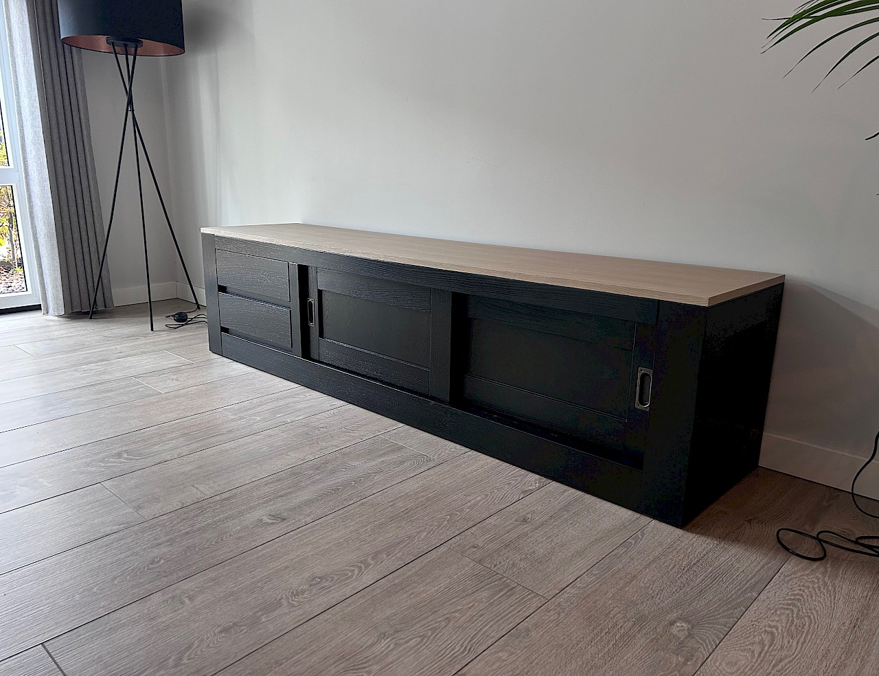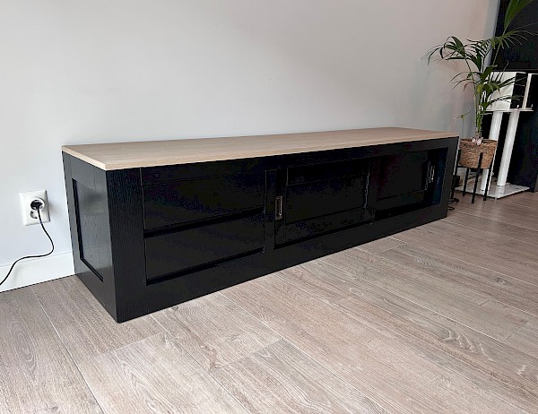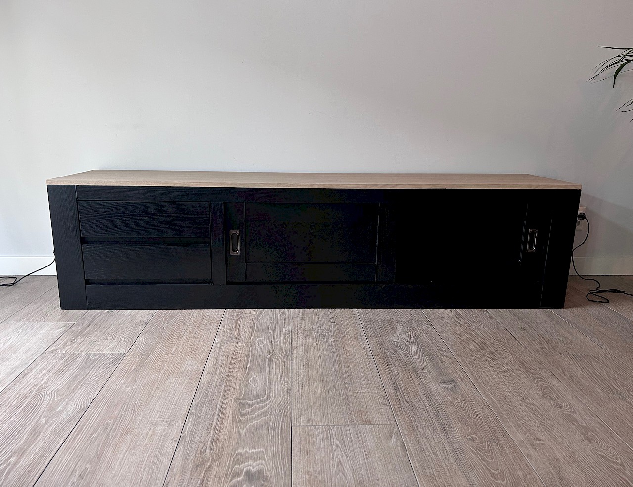 TV-meubel Mees 200 Zwart eiken incl. eiken top