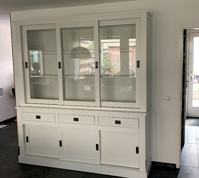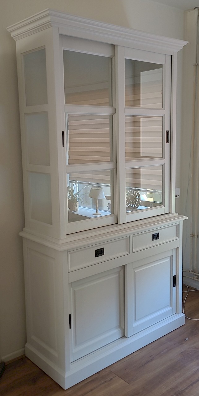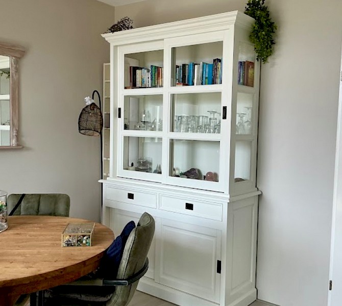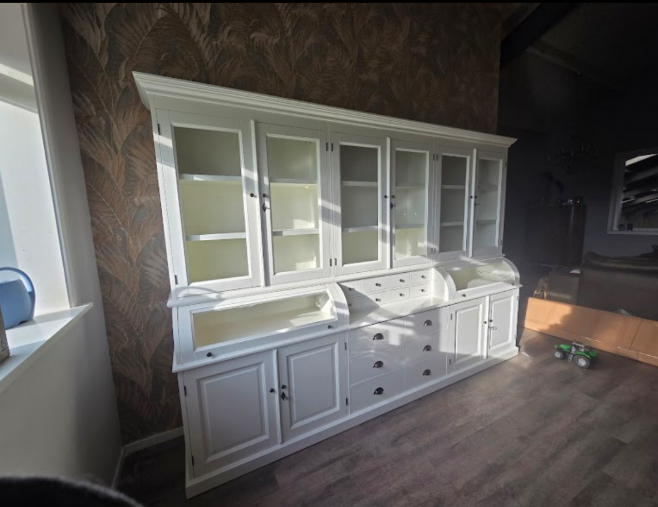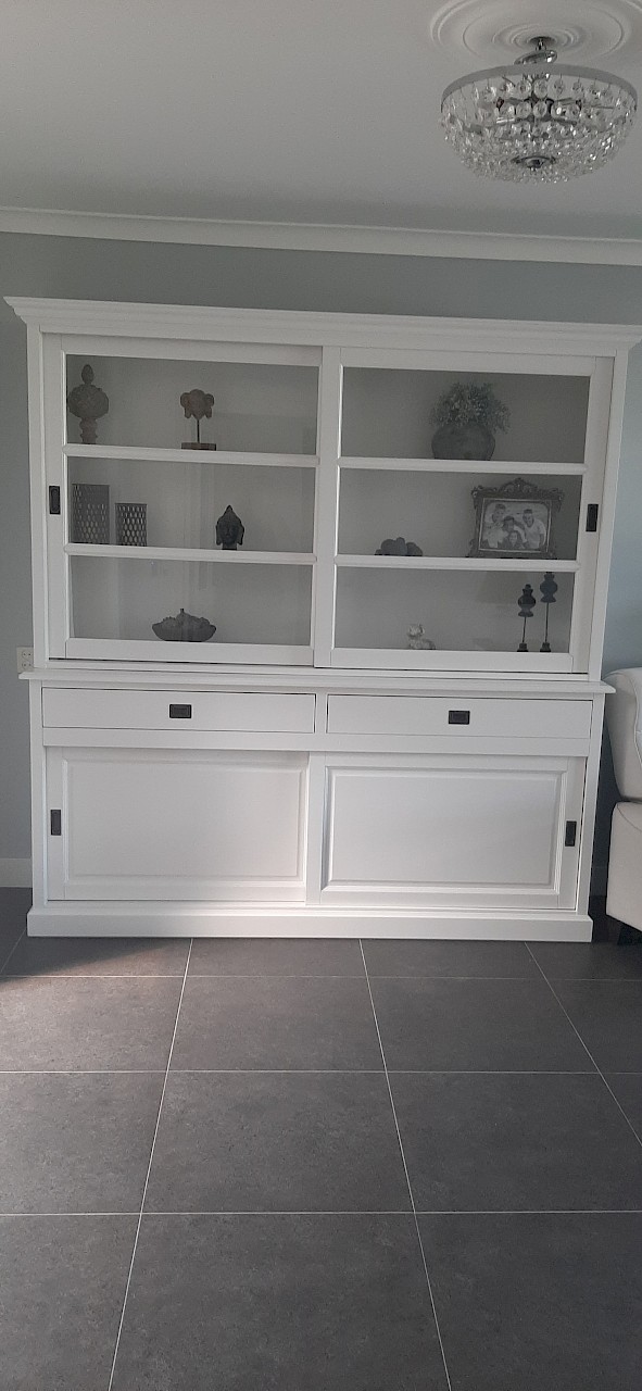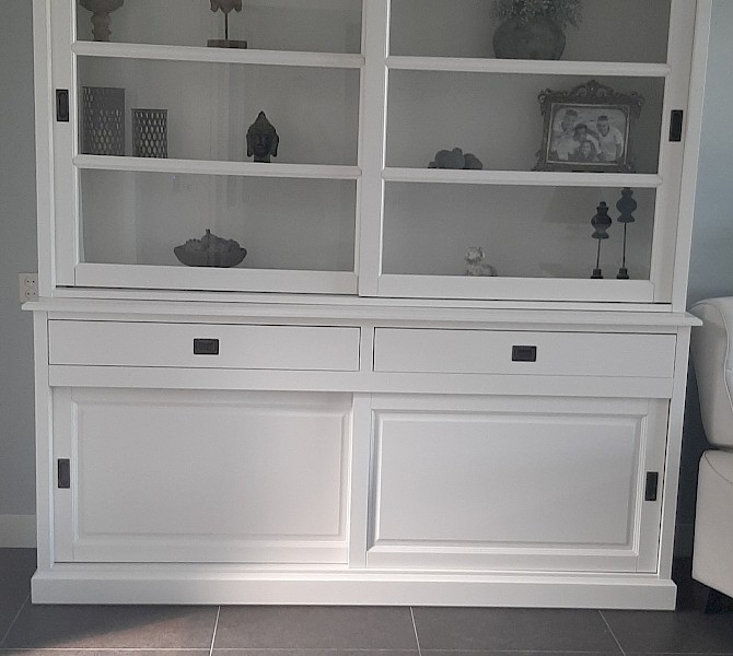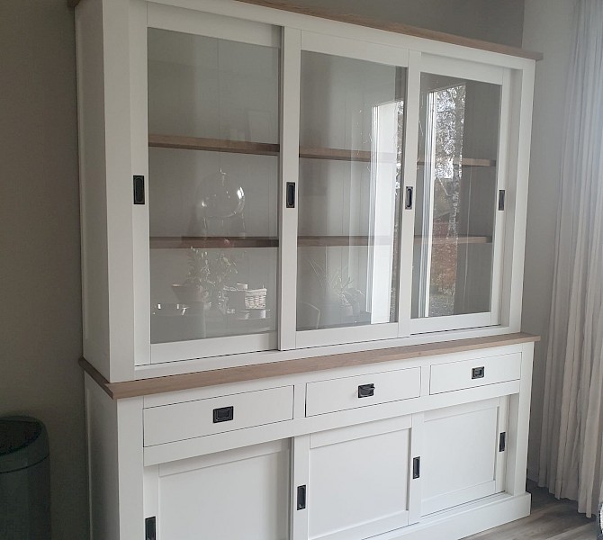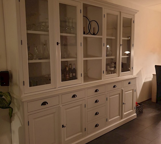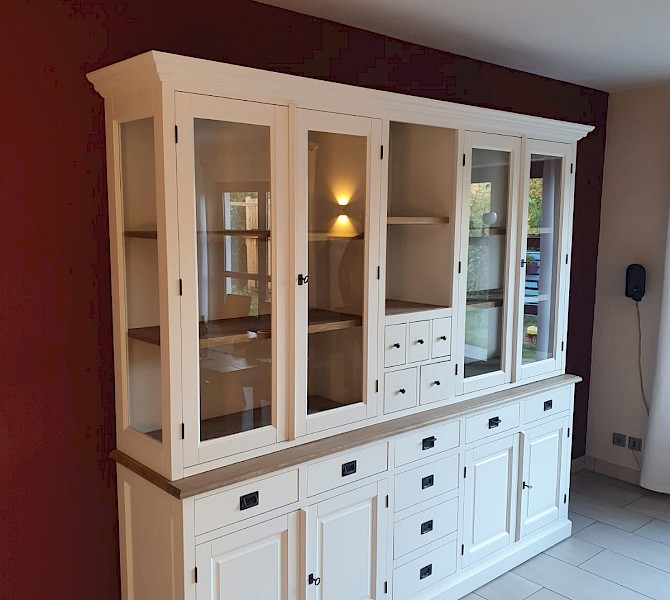 Perfecte service en goede kwaliteit. Toen de vitrinekast geleverd werd viel het bestaande dressoir in het niets. Met de maten van het oude dressoir is een nieuwe dressoir op maat gemaakt en past alles weer bij elkaar.