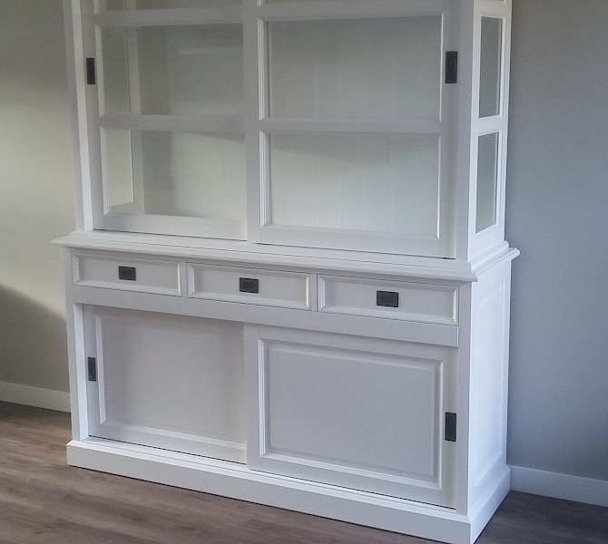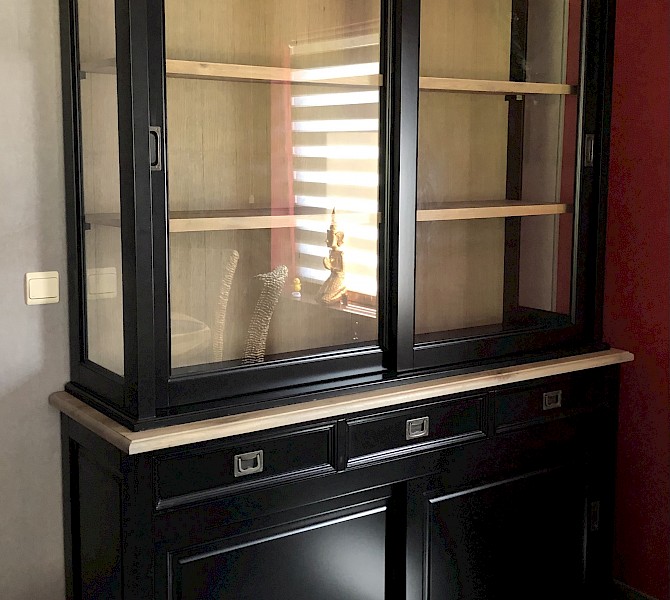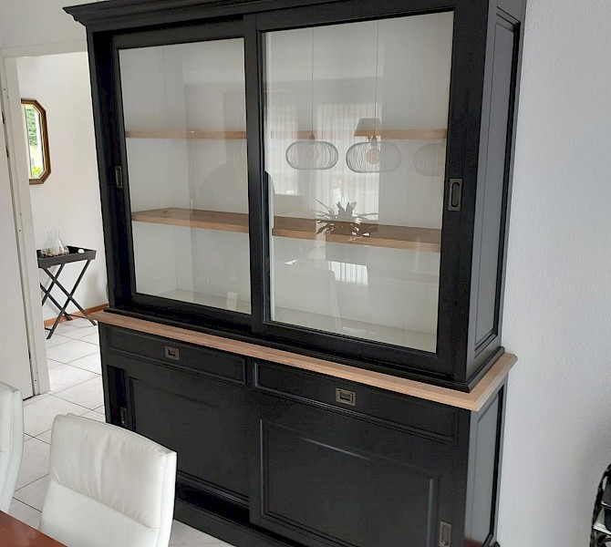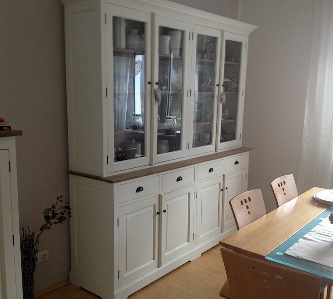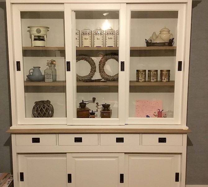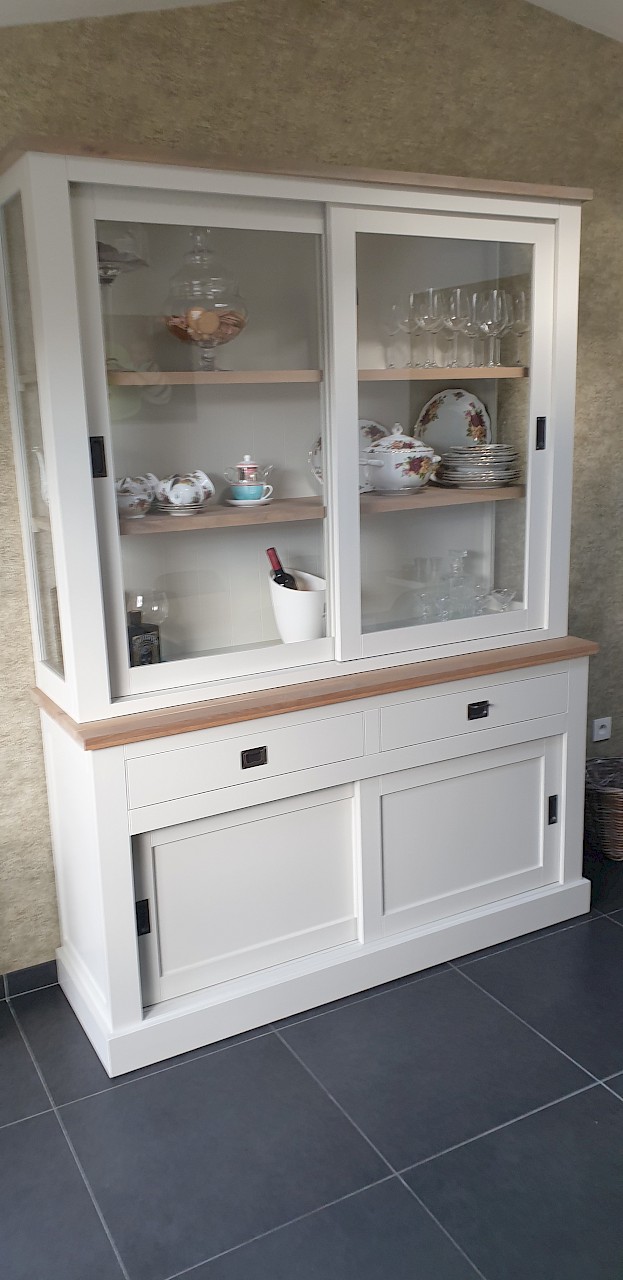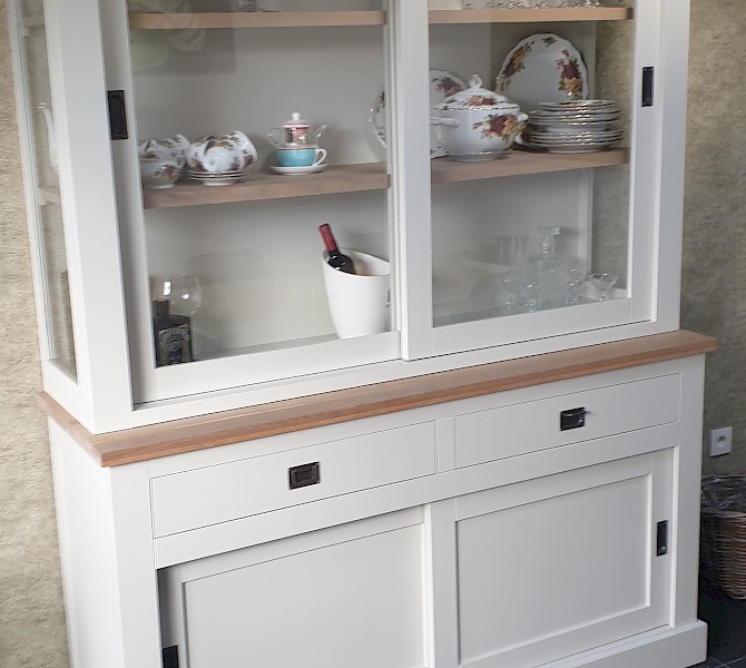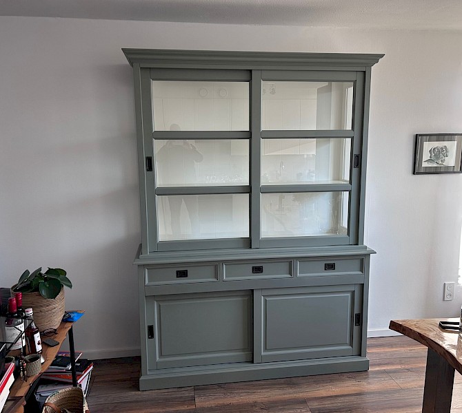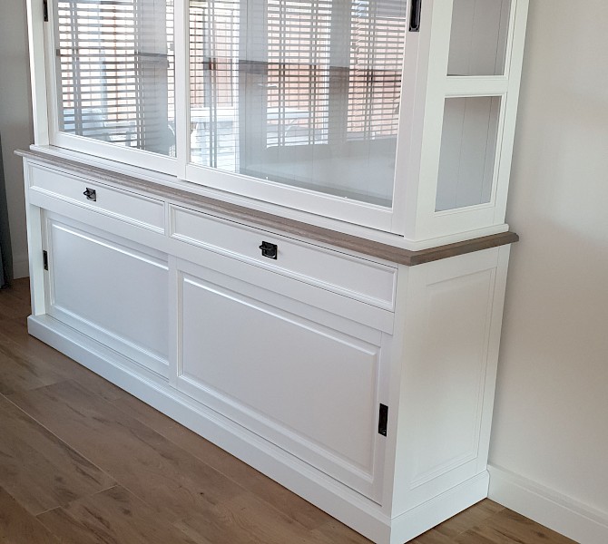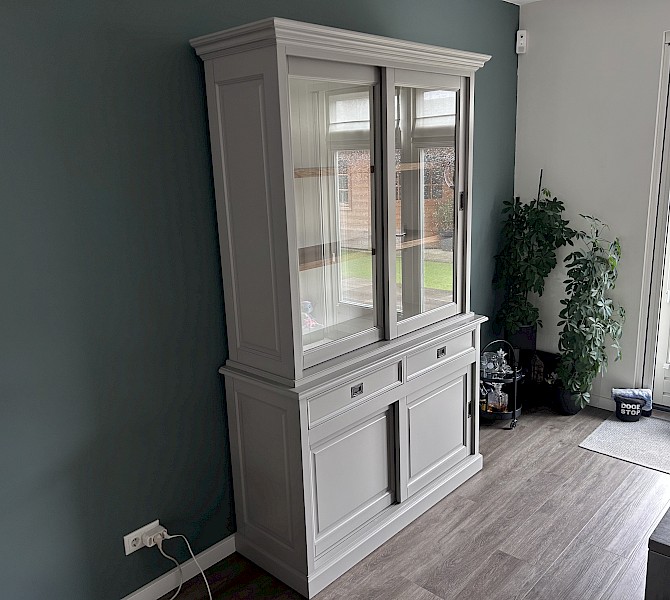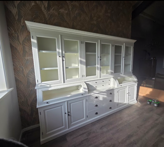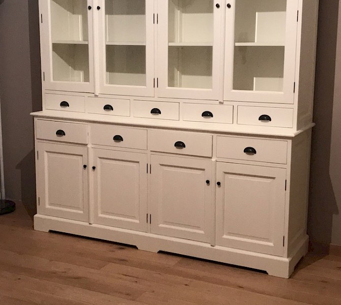 Perfecte service en goede kwaliteit. Toen de vitrinekast geleverd werd viel het bestaande dressoir in het niets. Met de maten van het oude dressoir is een nieuwe dressoir op maat gemaakt en past alles weer bij elkaar.