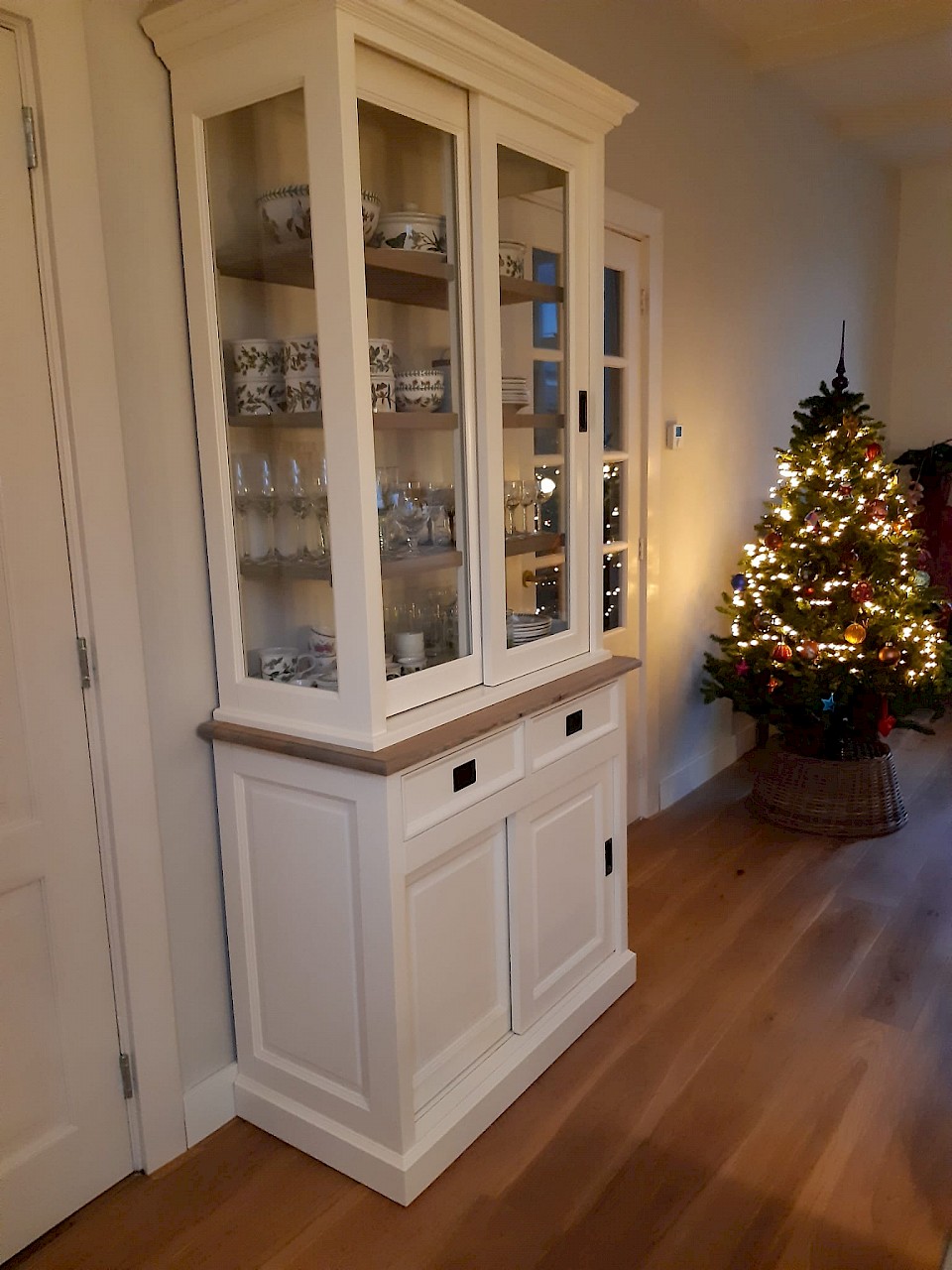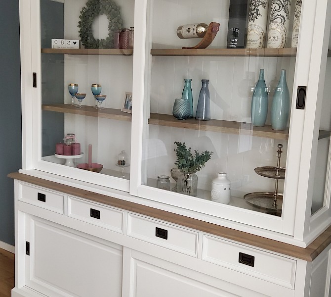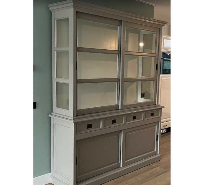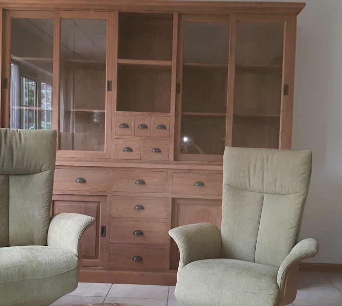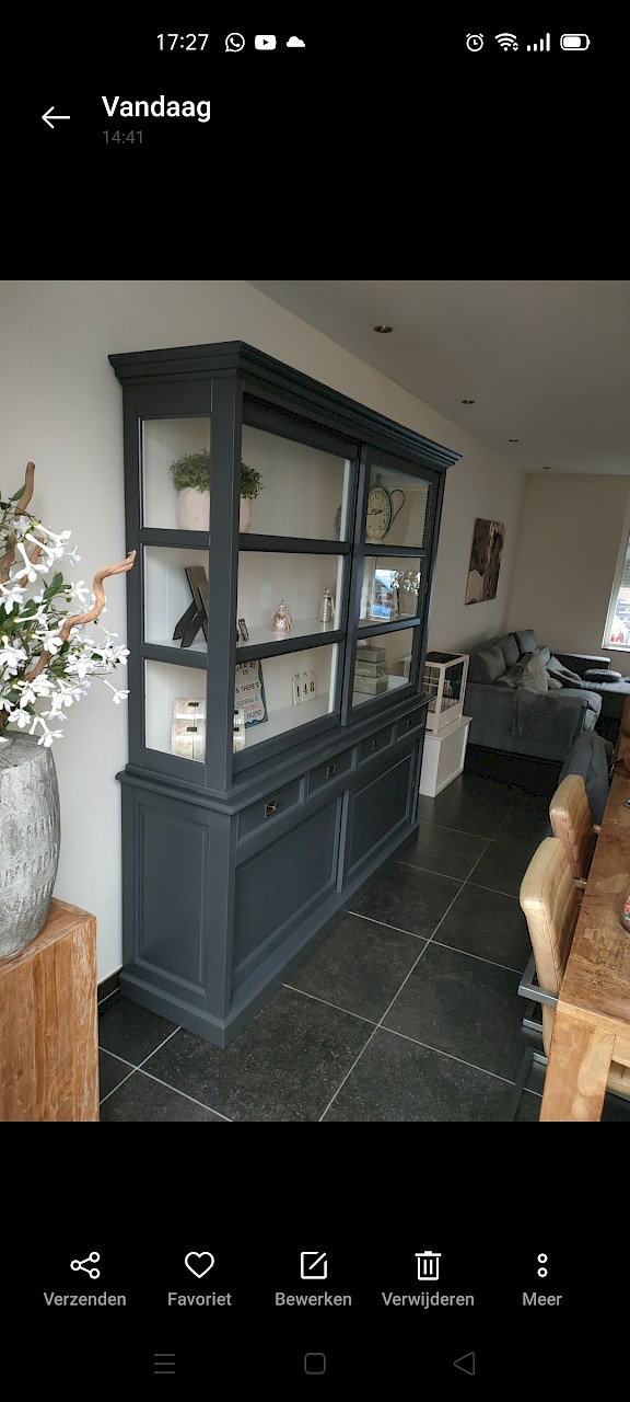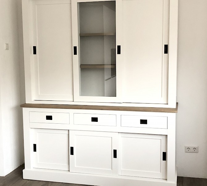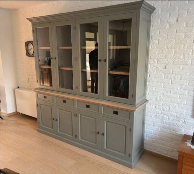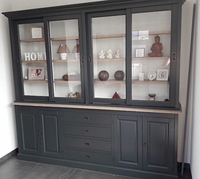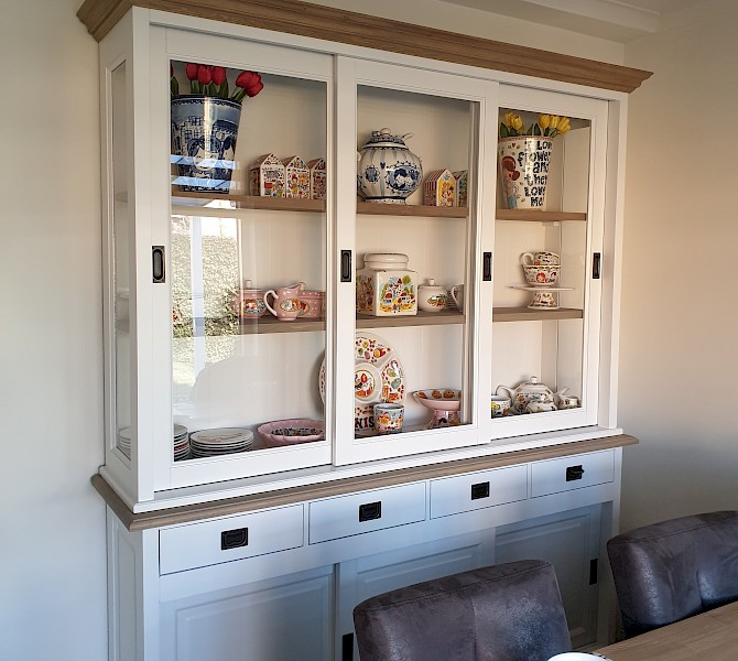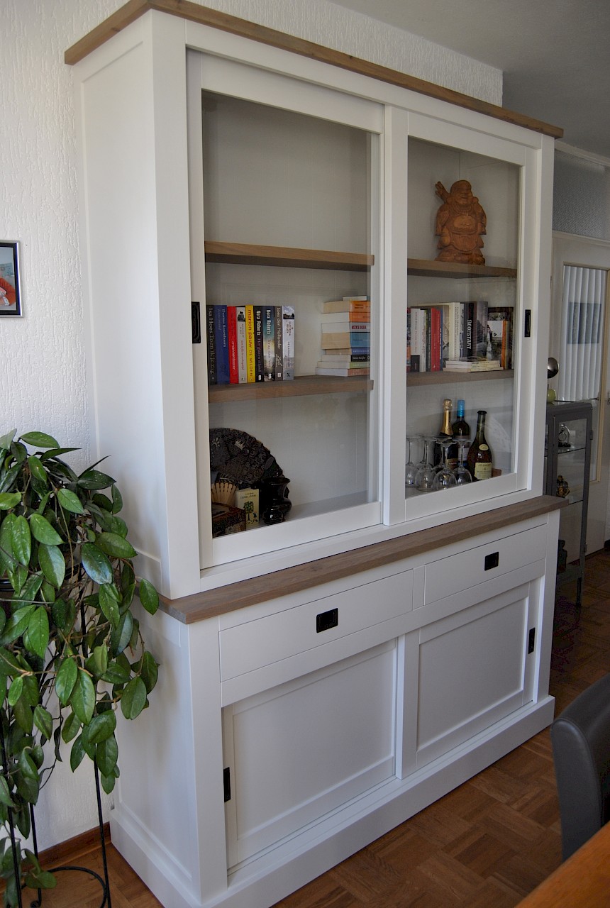 Perfecte service en goede kwaliteit. Toen de vitrinekast geleverd werd viel het bestaande dressoir in het niets. Met de maten van het oude dressoir is een nieuwe dressoir op maat gemaakt en past alles weer bij elkaar.