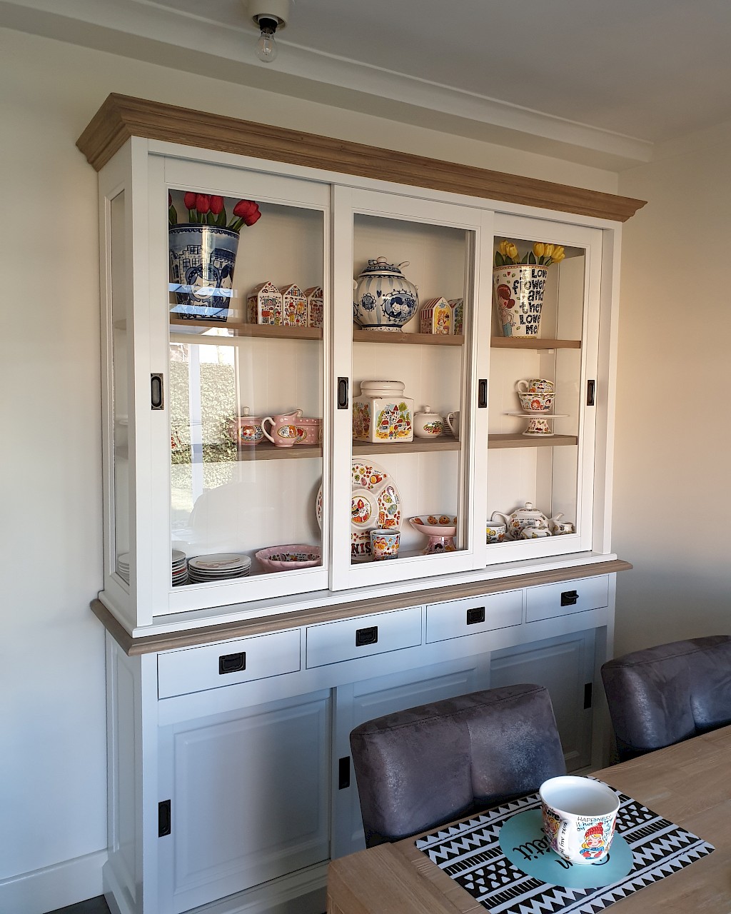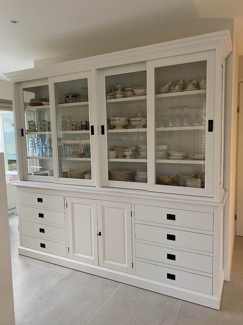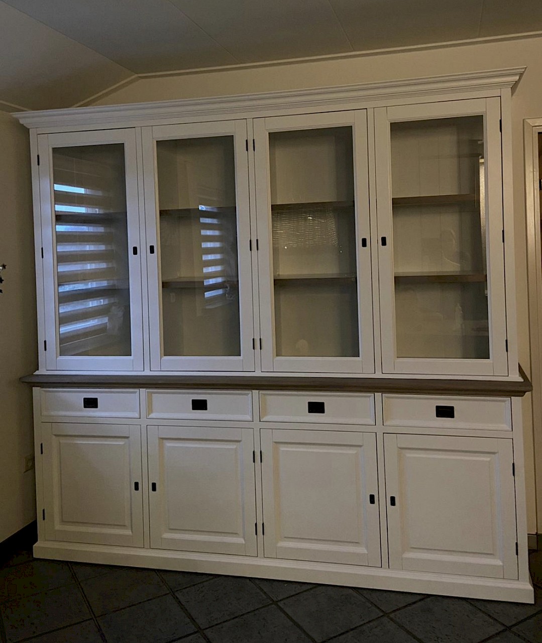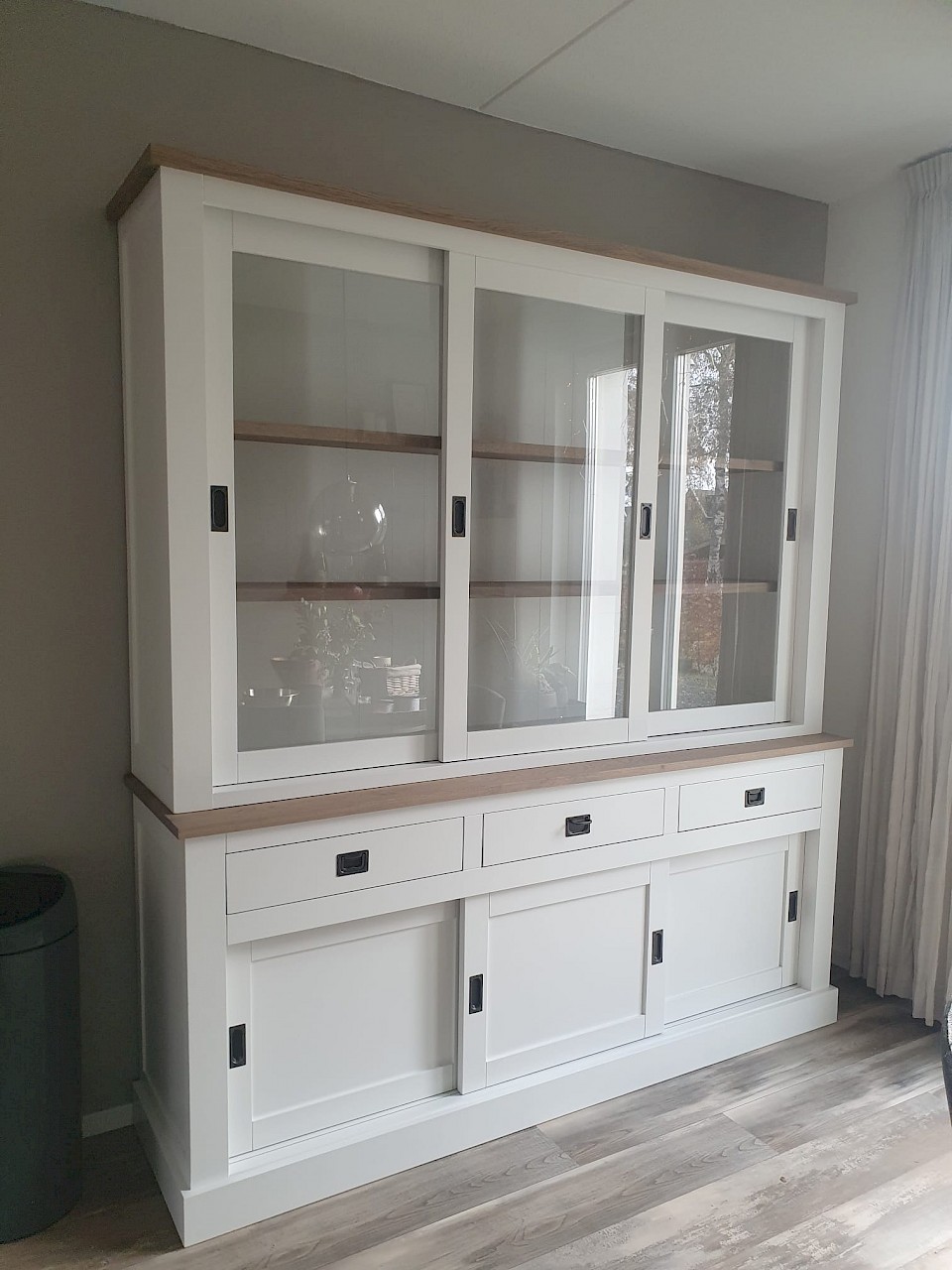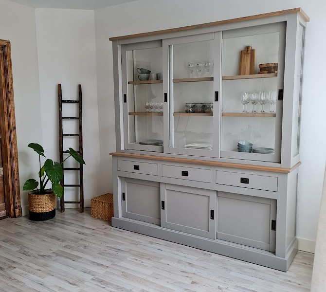 Perfecte service en goede kwaliteit. Toen de vitrinekast geleverd werd viel het bestaande dressoir in het niets. Met de maten van het oude dressoir is een nieuwe dressoir op maat gemaakt en past alles weer bij elkaar.