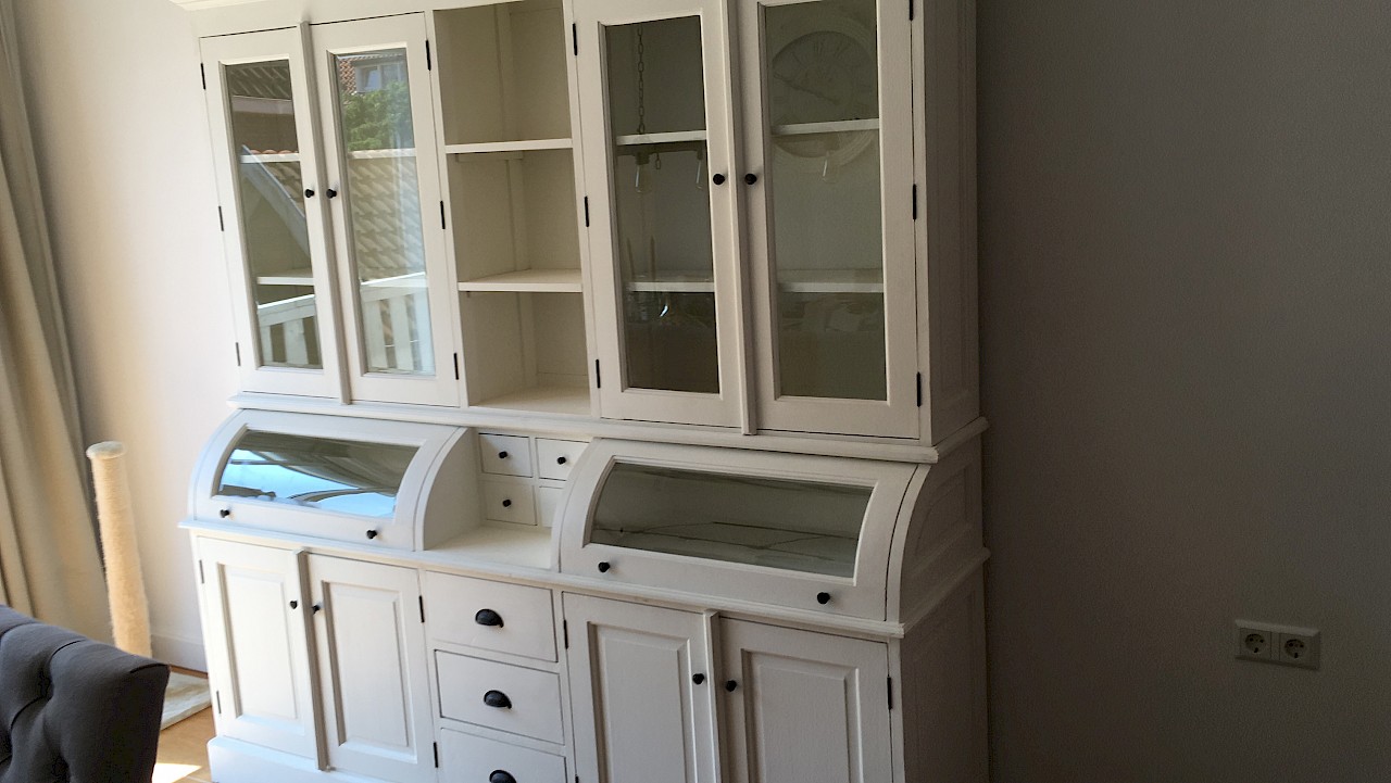 Een geweldige mooie kast hij staat te pronken in de kamer. Een perfecte service ,vriendelijk personeel (jammer dat ze geen tijd voor een kopje koffie hadden na zo,n lange rit) en stipt op tijd.