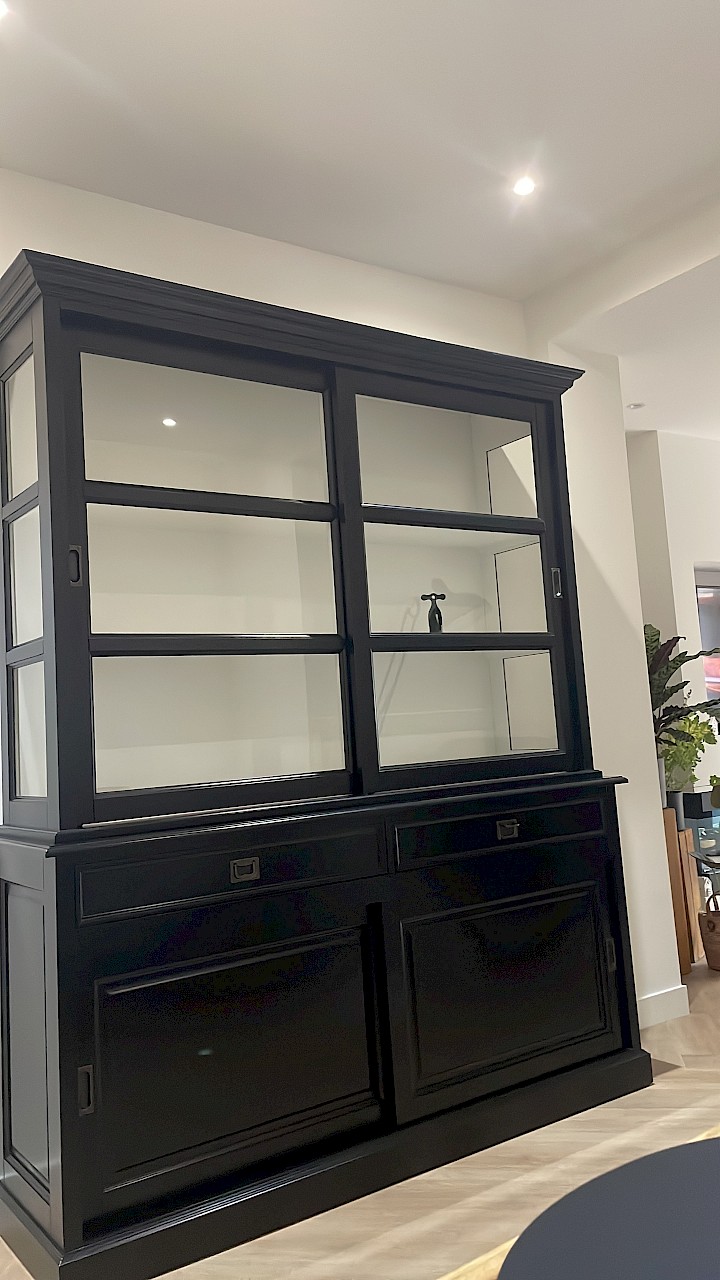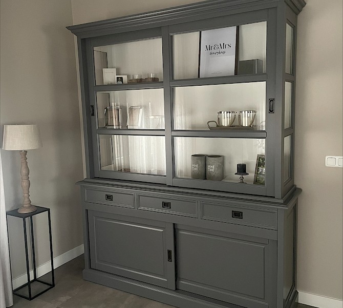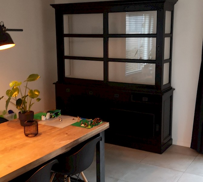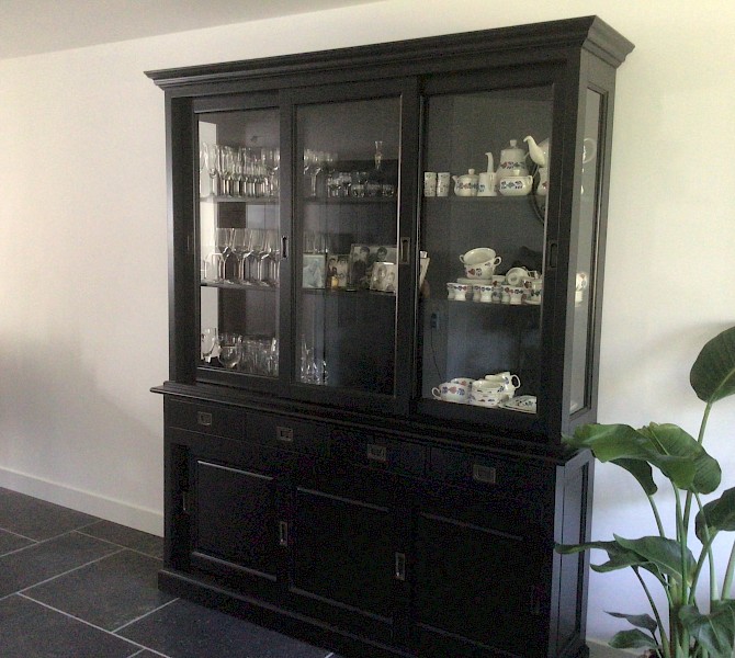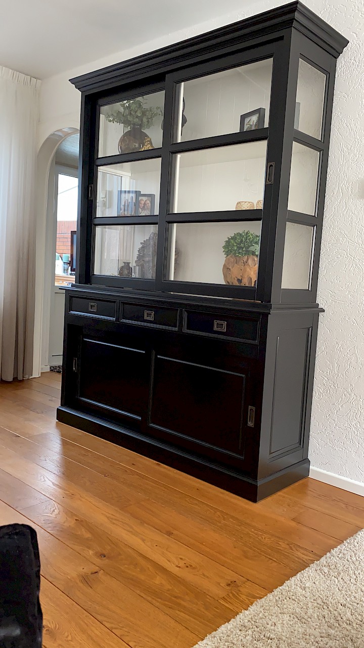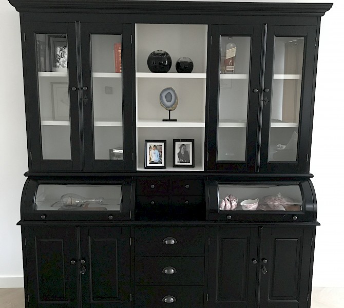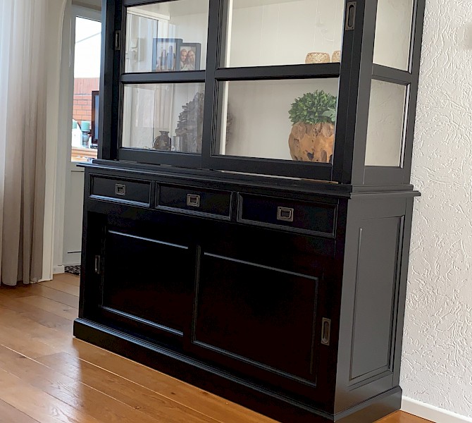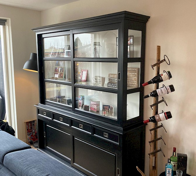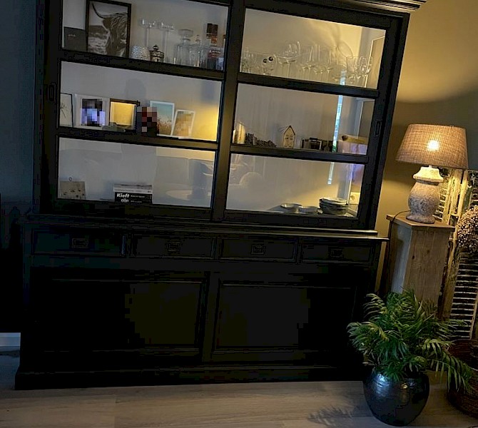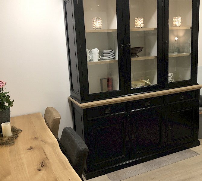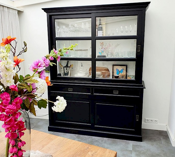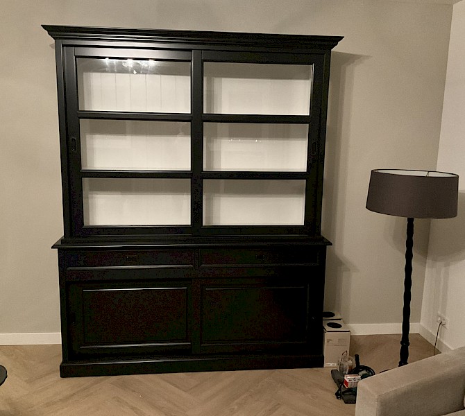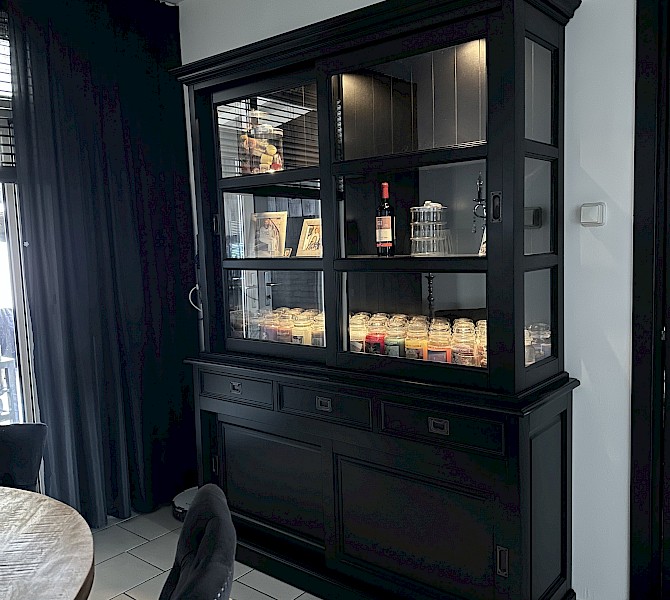 Hartelijk dank voor het bezorgen en plaatsen van de prachtige zwarte buffetkast. De deuren en lades glijden heel mooi en de kast is echt een Eyecatcher in onze woonkamer. Er past echt veel in en door het glas in de zijkant werkt alles optisch heel ruim en licht. We zijn er super blij mee!!