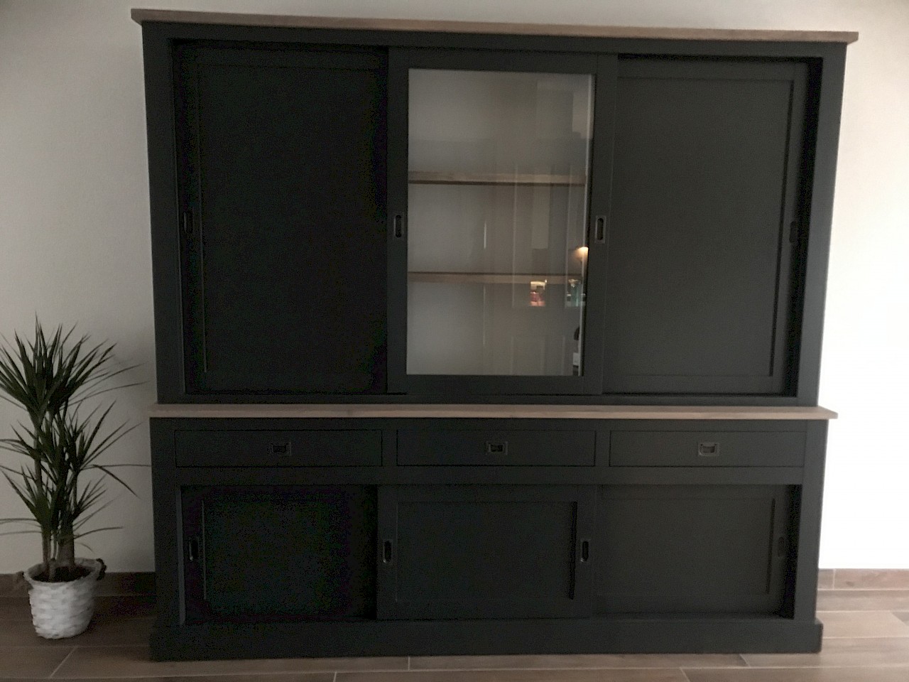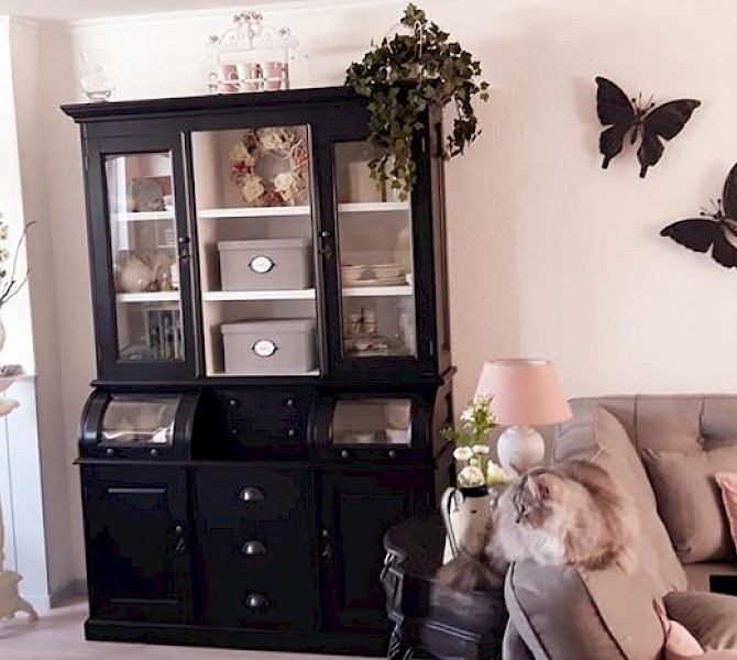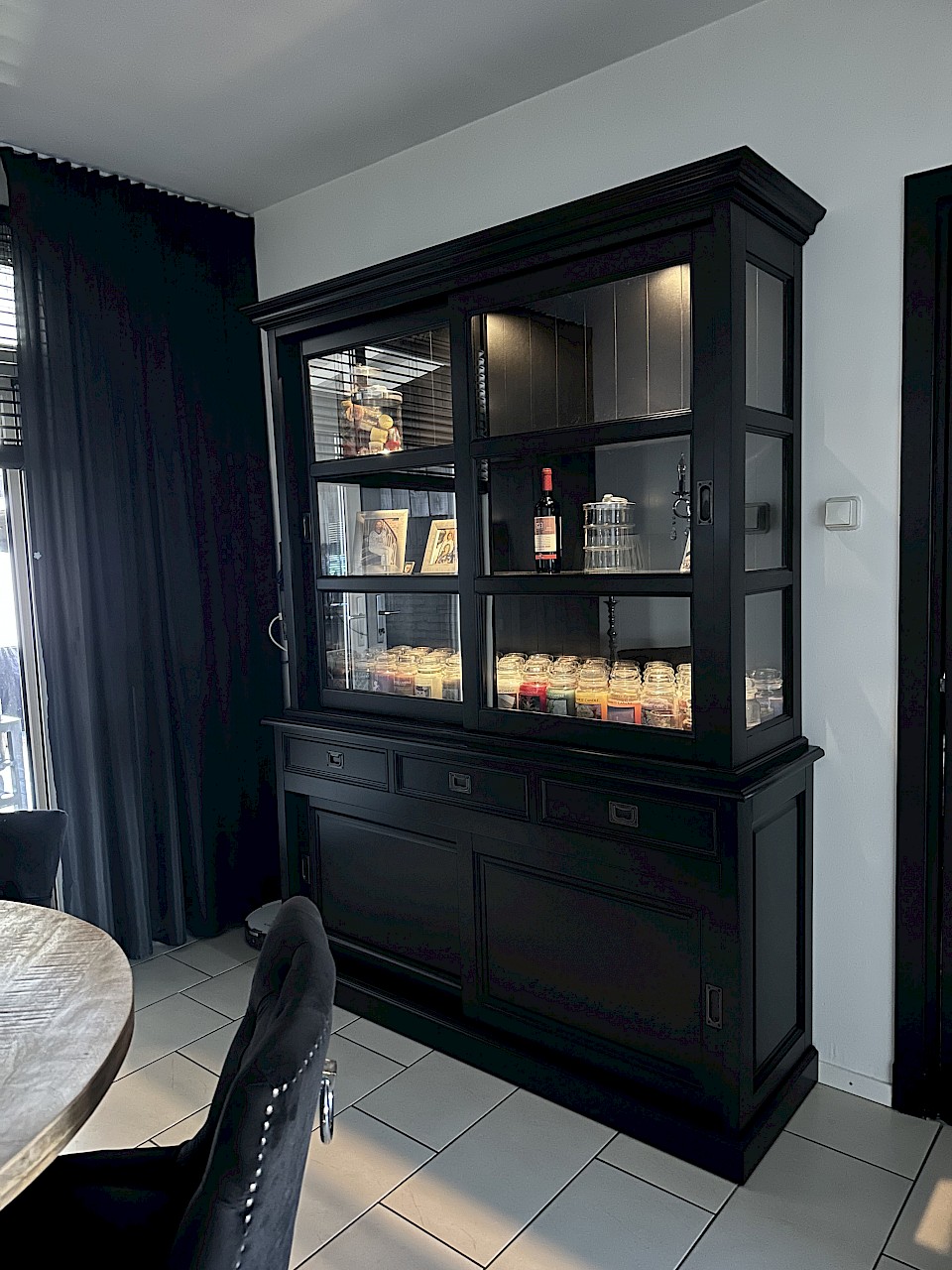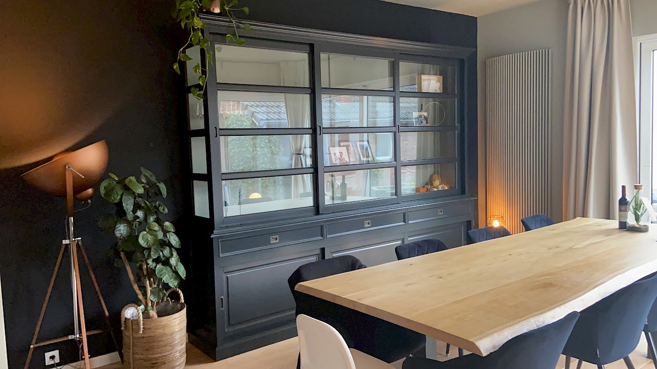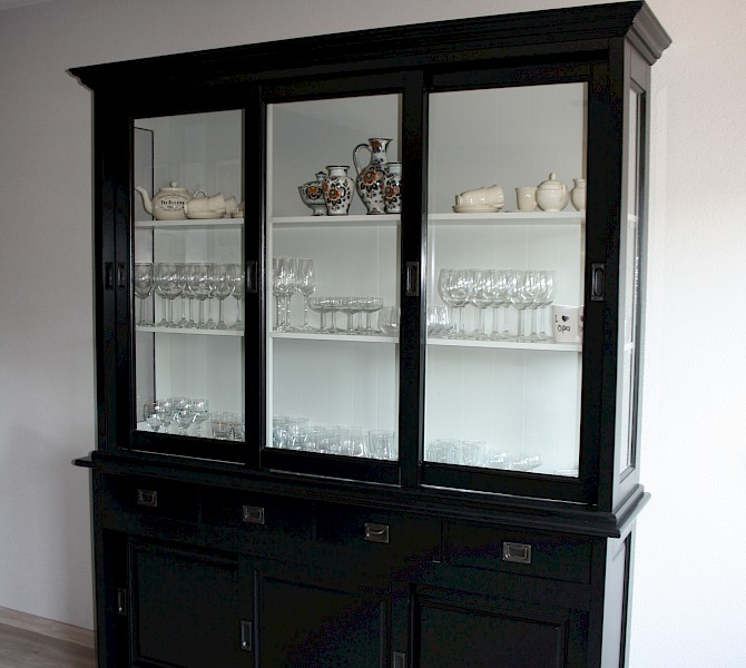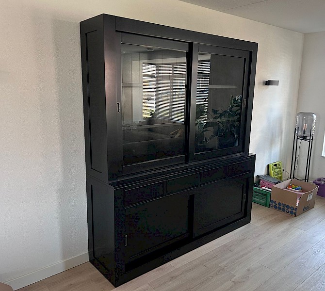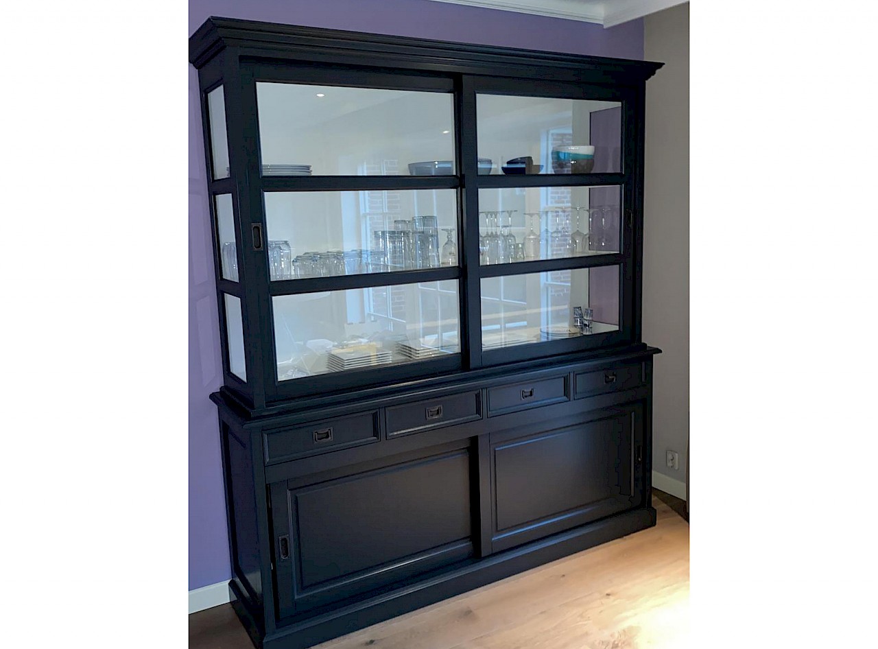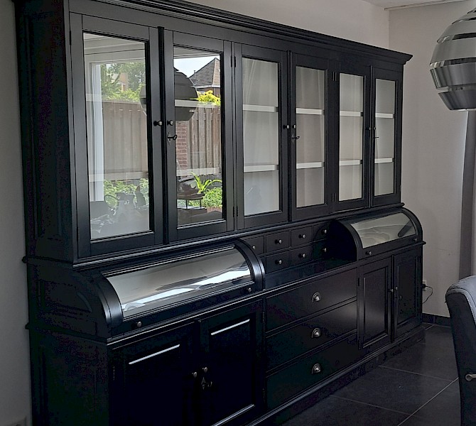Hartelijk dank voor het bezorgen en plaatsen van de prachtige zwarte buffetkast. De deuren en lades glijden heel mooi en de kast is echt een Eyecatcher in onze woonkamer. Er past echt veel in en door het glas in de zijkant werkt alles optisch heel ruim en licht. We zijn er super blij mee!!