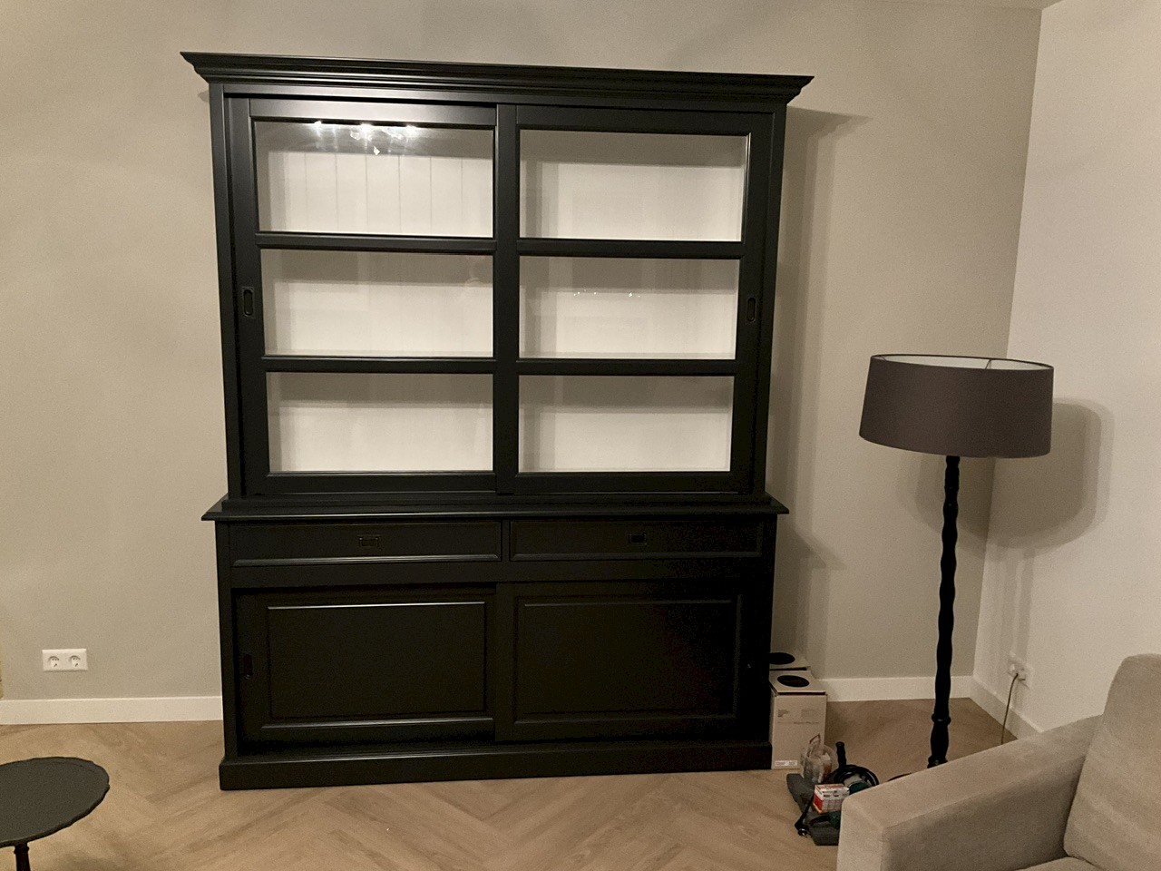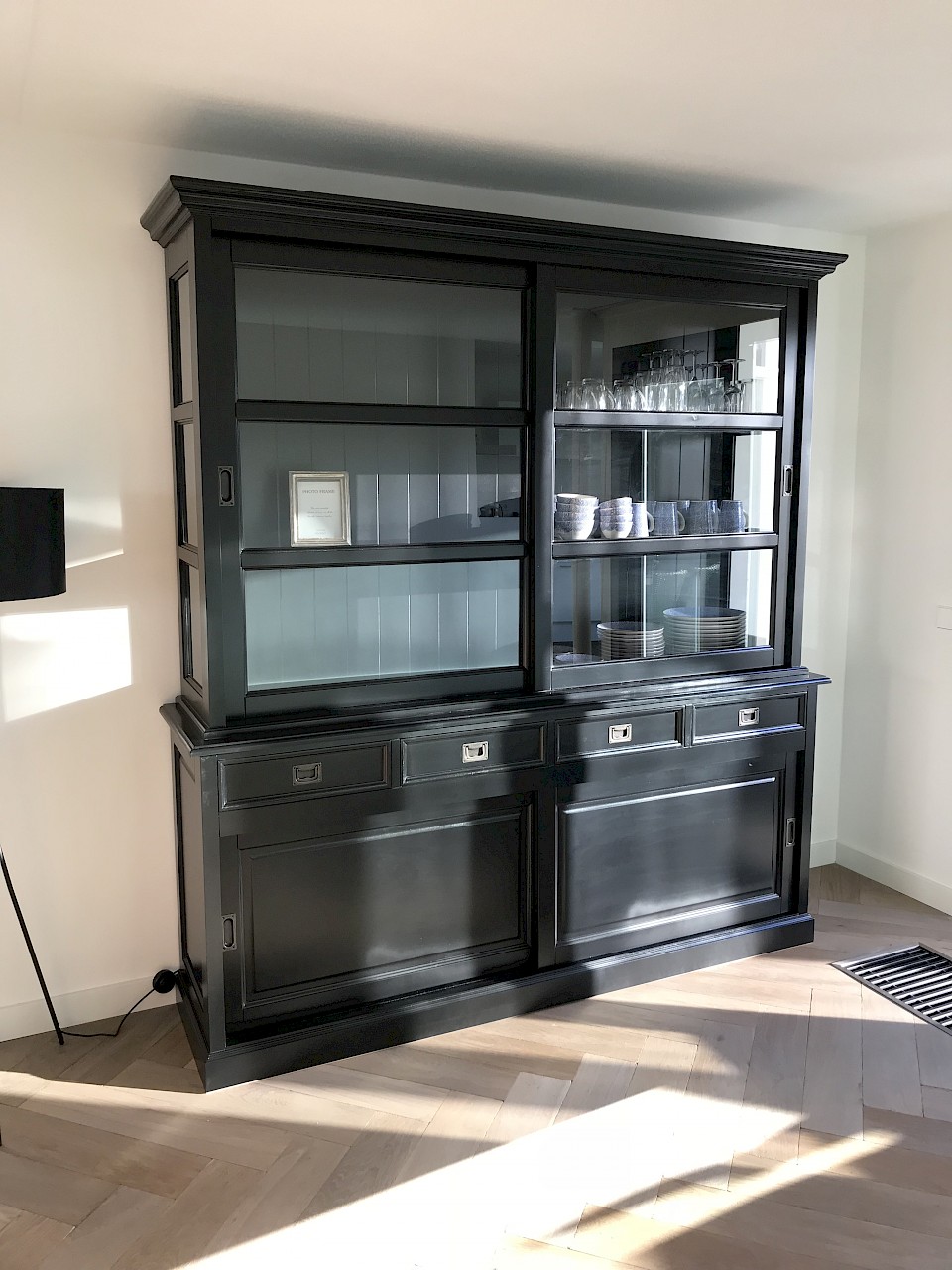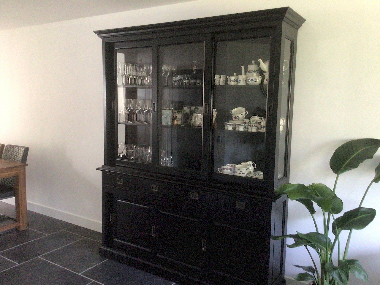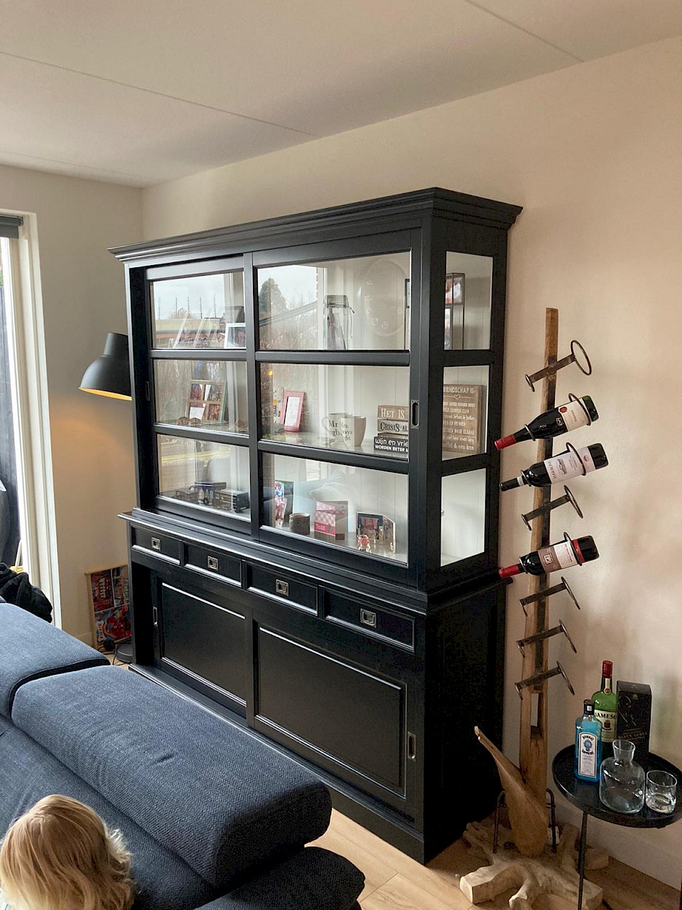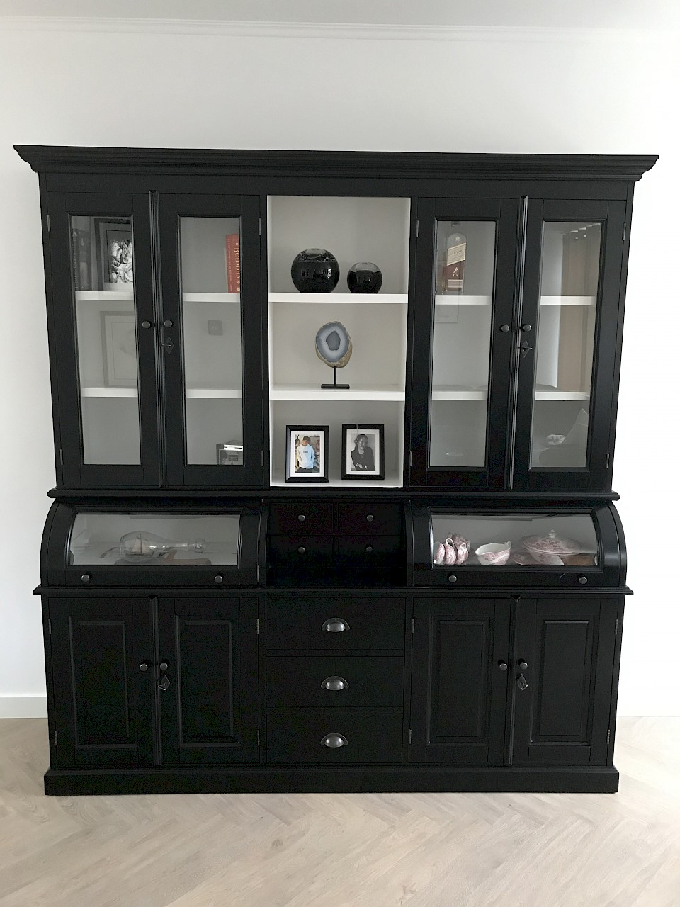 Hartelijk dank voor het bezorgen en plaatsen van de prachtige zwarte buffetkast. De deuren en lades glijden heel mooi en de kast is echt een Eyecatcher in onze woonkamer. Er past echt veel in en door het glas in de zijkant werkt alles optisch heel ruim en licht. We zijn er super blij mee!!