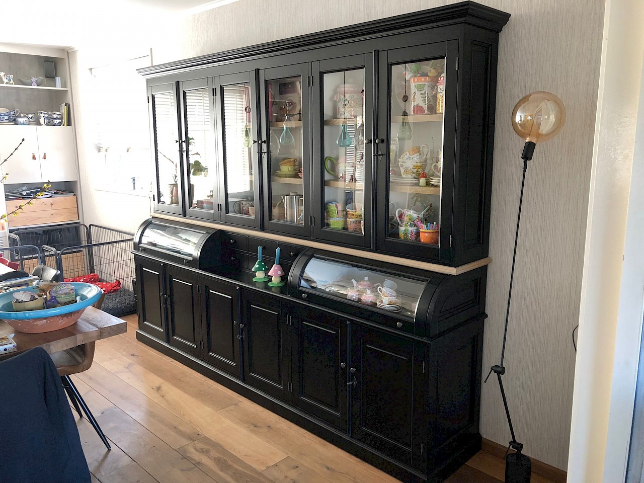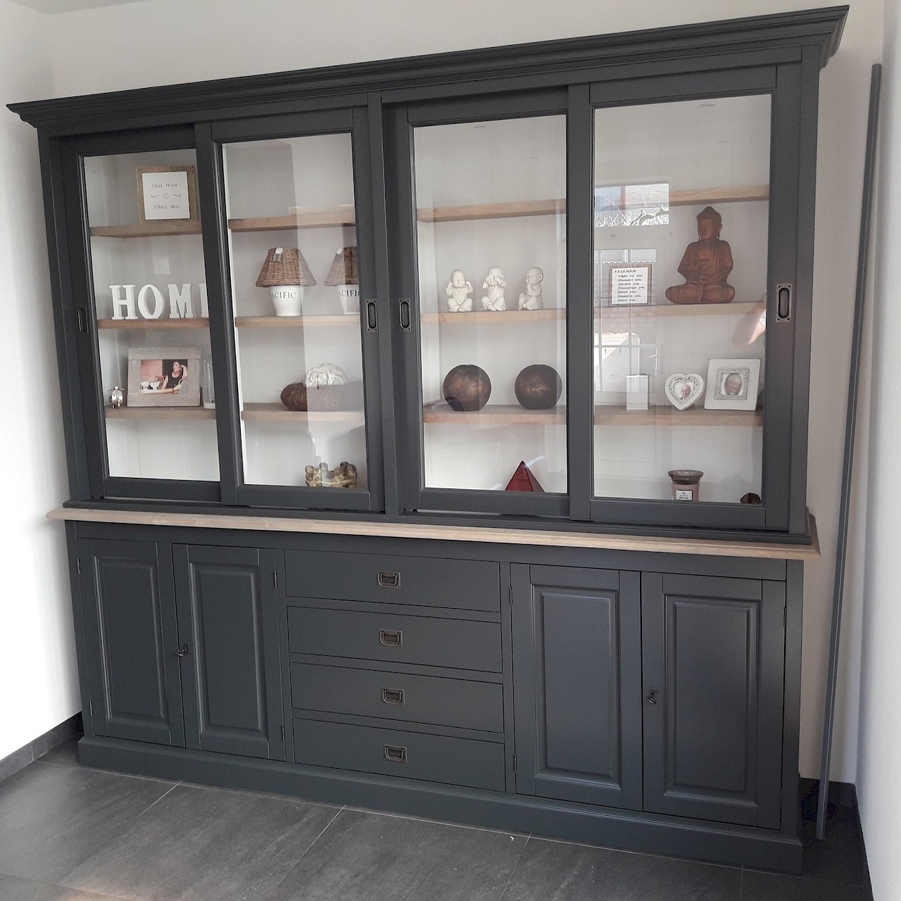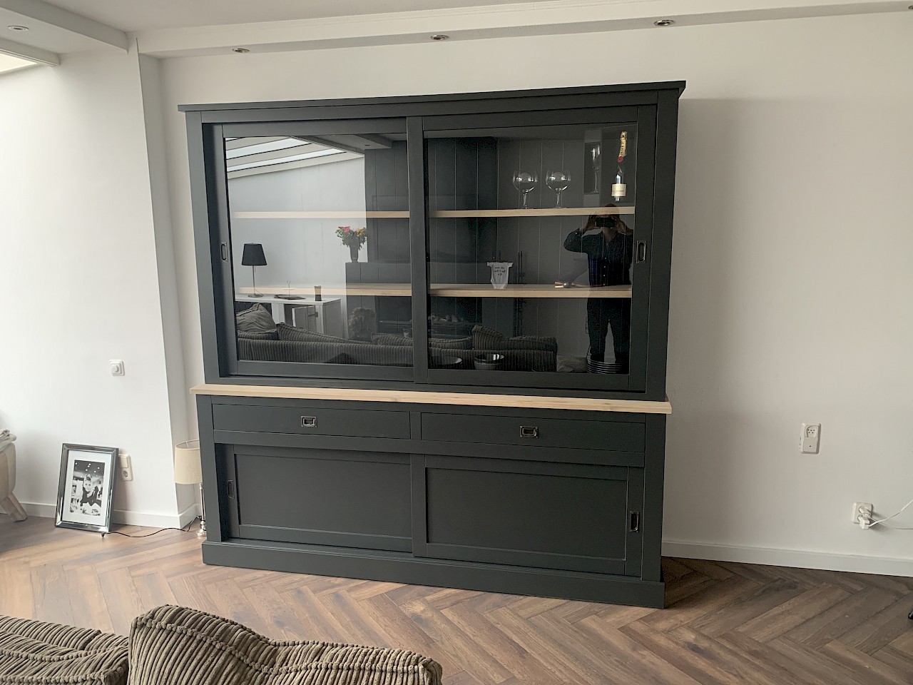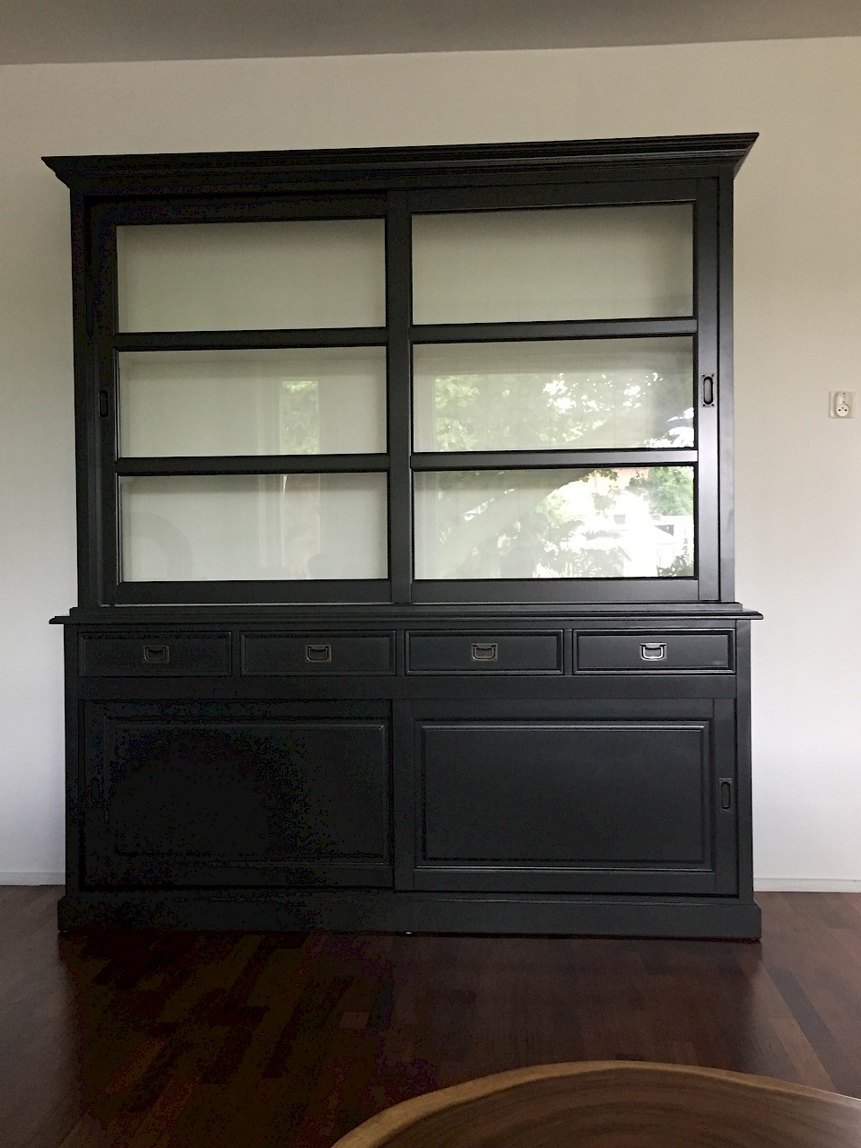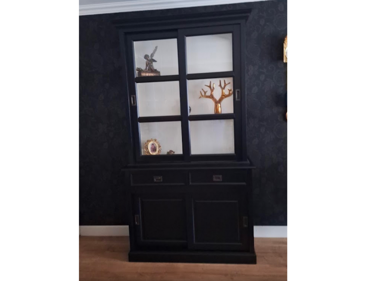 Hartelijk dank voor het bezorgen en plaatsen van de prachtige zwarte buffetkast. De deuren en lades glijden heel mooi en de kast is echt een Eyecatcher in onze woonkamer. Er past echt veel in en door het glas in de zijkant werkt alles optisch heel ruim en licht. We zijn er super blij mee!!