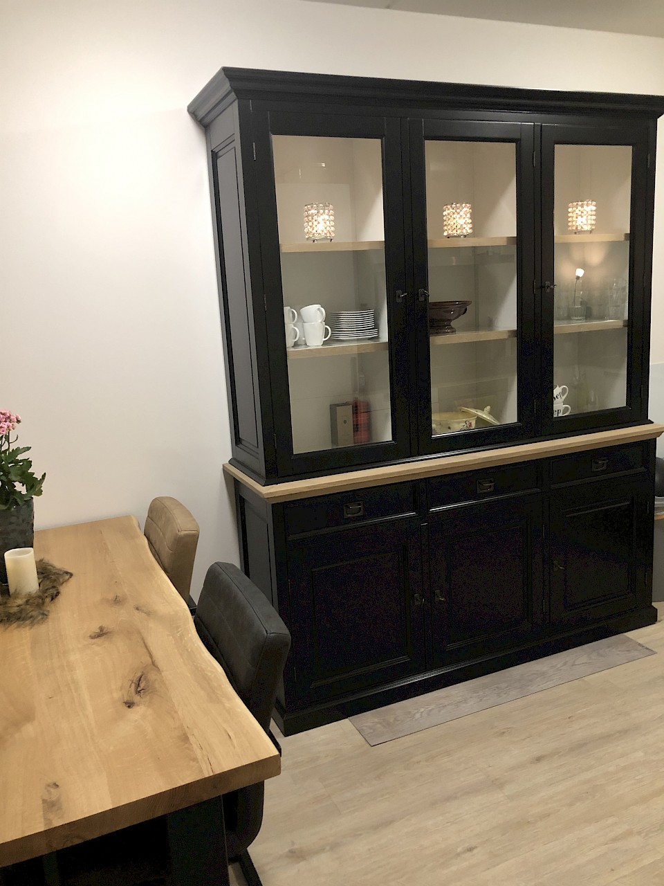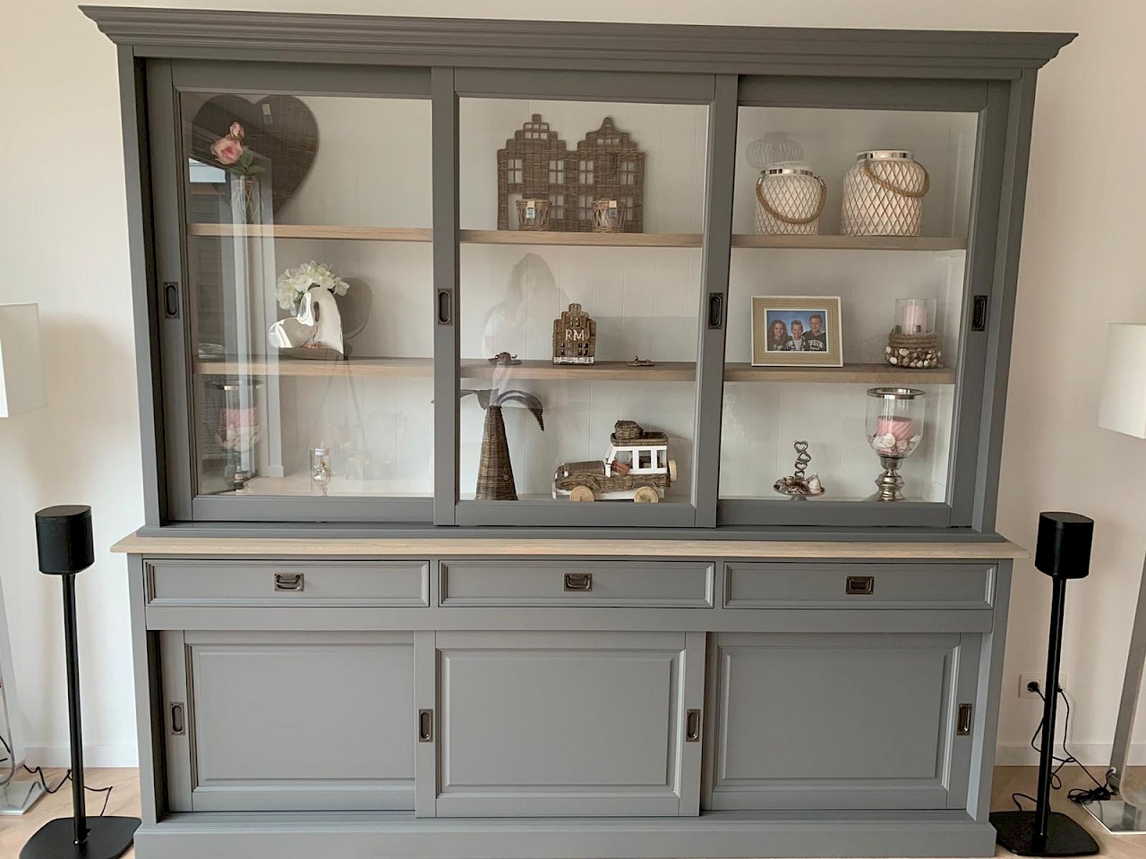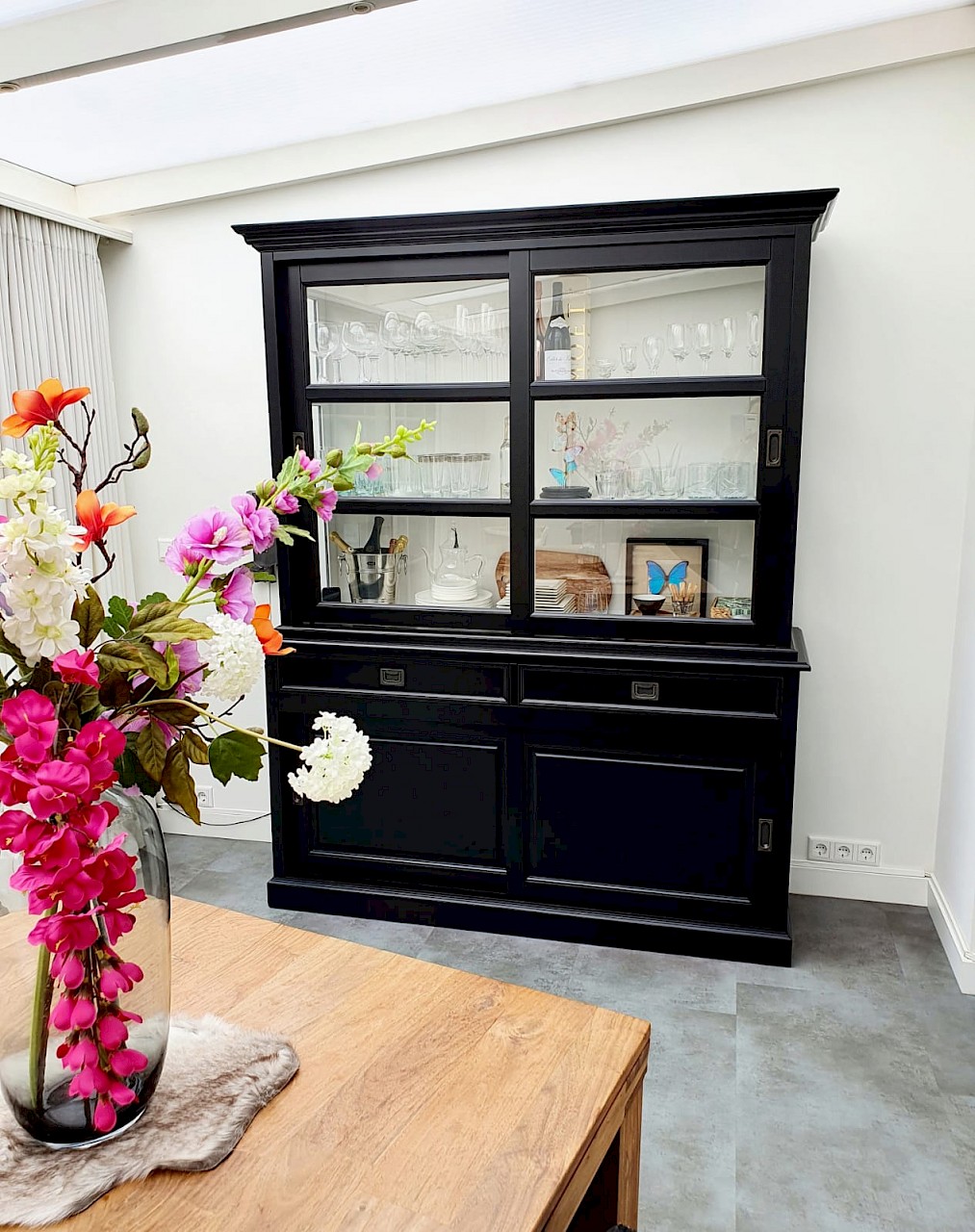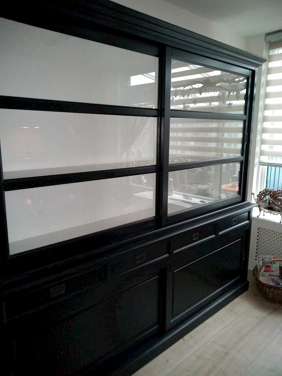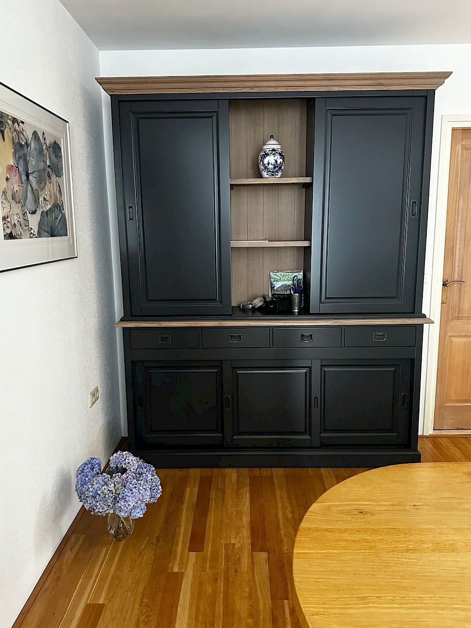 Hartelijk dank voor het bezorgen en plaatsen van de prachtige zwarte buffetkast. De deuren en lades glijden heel mooi en de kast is echt een Eyecatcher in onze woonkamer. Er past echt veel in en door het glas in de zijkant werkt alles optisch heel ruim en licht. We zijn er super blij mee!!