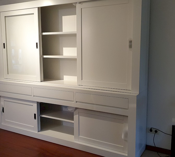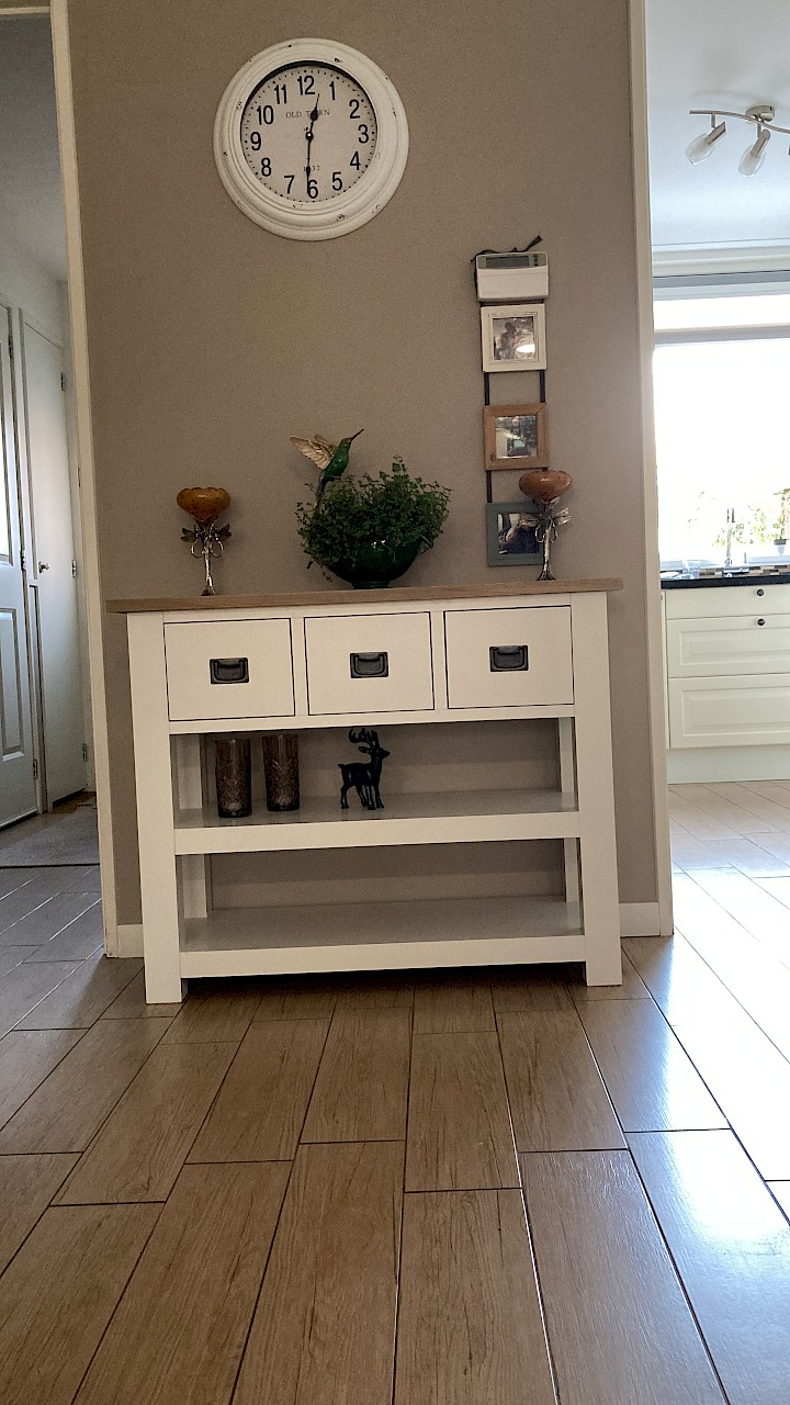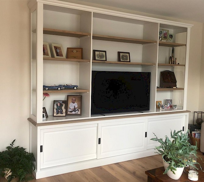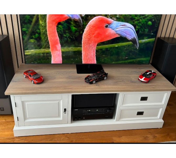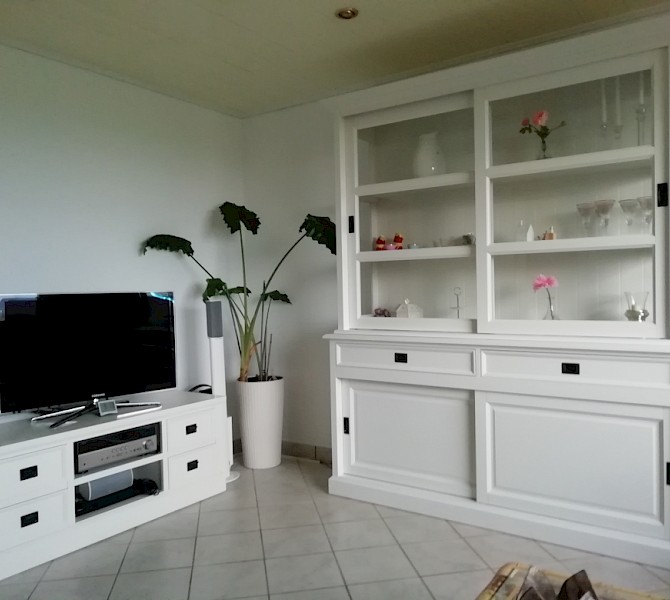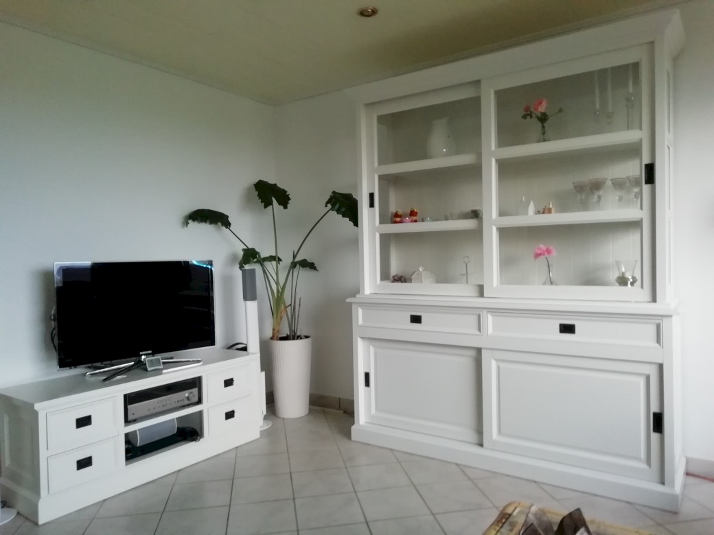 Bij toeval kwamen we op jullie site, daar stond de kast die ik bedoelde, alleen ik wilde hem een tikkie anders, zo ook bij de tv kast en de site table. Goeie service, super mooi geworden, netjes afgeleverd. Wij zijn er super blij mee. Dank jullie wel