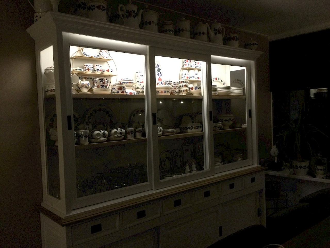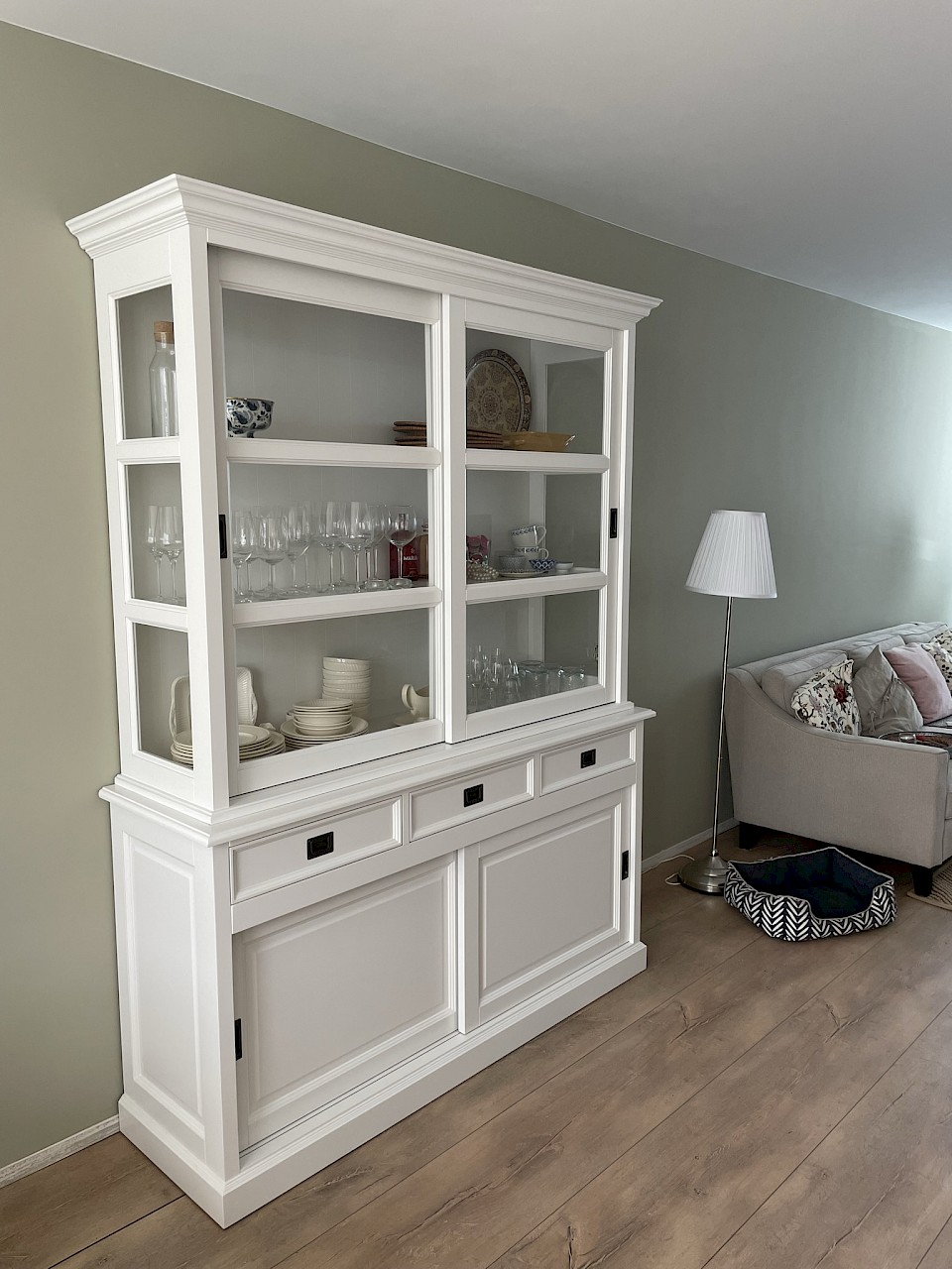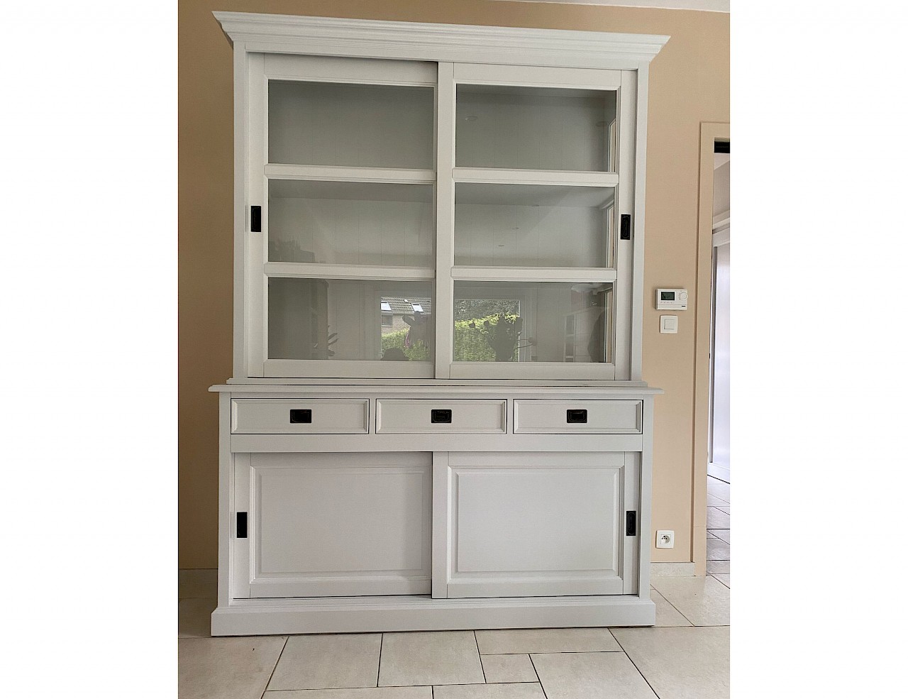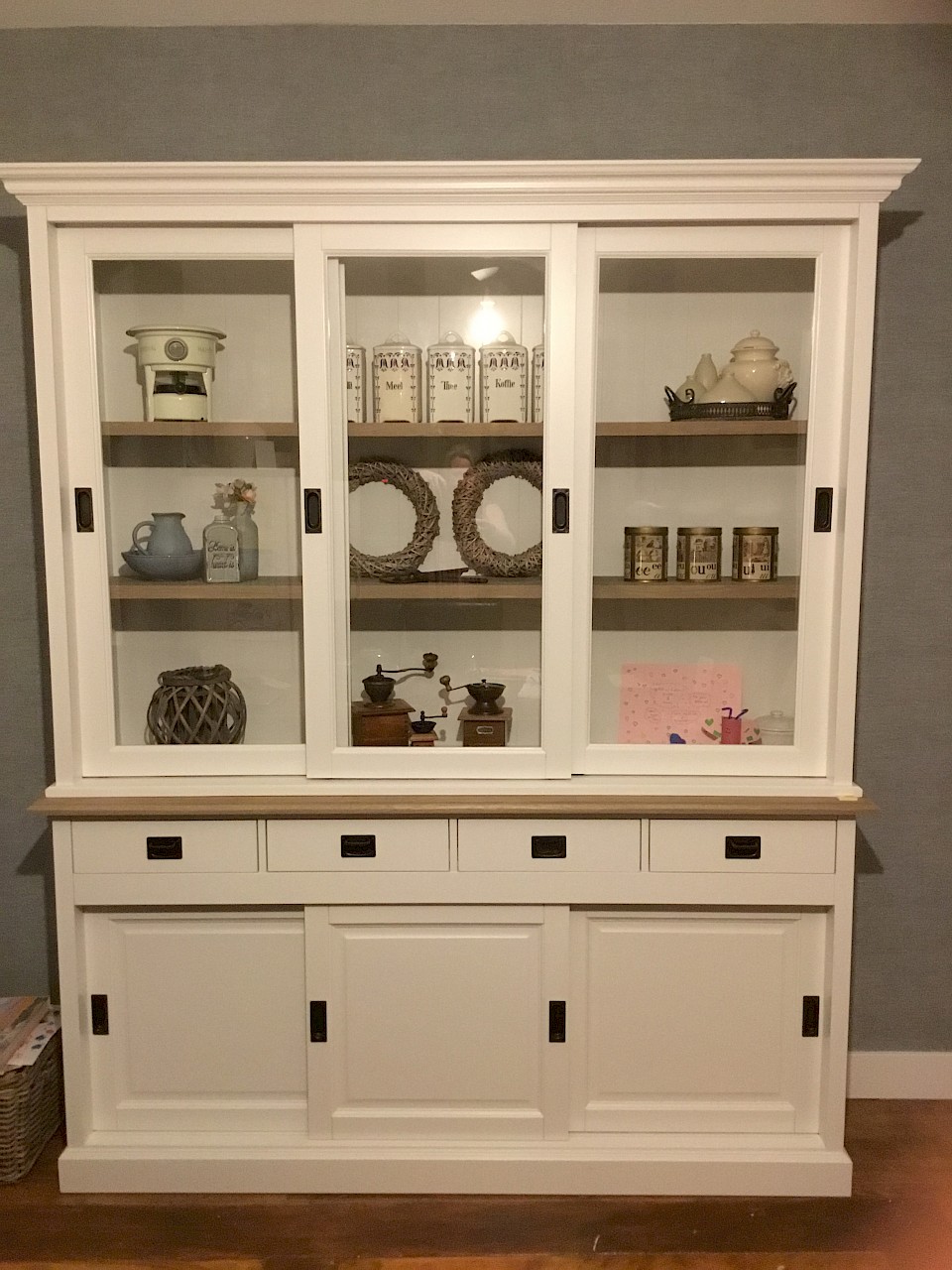 Gisteren is onze nieuwe kast geleverd. Mooie kwaliteit, alle deuren schuiven perfect. Eindelijk weer genoeg ruimte voor al het servies en de glazen. En dan ook nog een lekker flesje wijn cadeau!