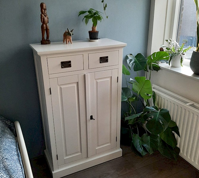Op internet een geweldig leuk kastje gezien. Dit was helaas niet leverbaar, maar kreeg gelijk een iets duurder aangeboden tegen hetzelfde bedrag. Bezorging netjes en snel! Dankjewel PS Al heel veel leuke reacties gehad op het kastje ;-)