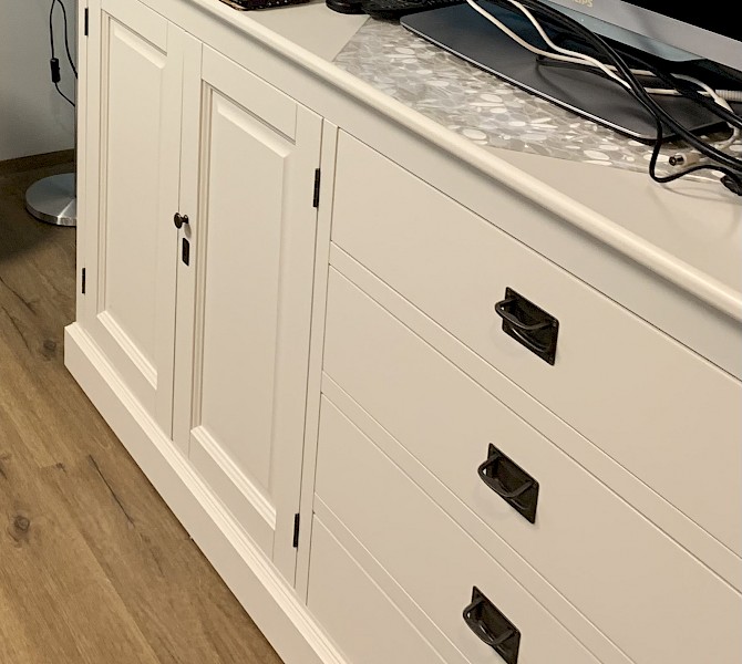 We zijn superblij met onze buffetkast, vriendelijk geholpen via videobellen door Roy, daarna snel opgepakt via de mail met informatie en factuur. Nadat we besteld hadden was de wachttijd ongeveer 4-6 weken, maar de transporteur Jan Krediet die de kast kwam brengen heeft ook zorgvuldig gehandeld.